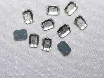 सिल्वर 2 होल अष्टकोणीय ग्लास स्टोन-10x14 मिमी