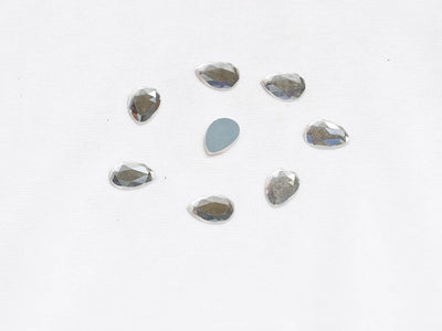 सिल्वर फ्लैट ड्रॉप ग्लास स्टोन - 14x10 मिमी