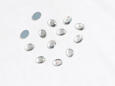 सिल्वर फ्लैट ओवल ग्लास स्टोन - 14x10 मिमी