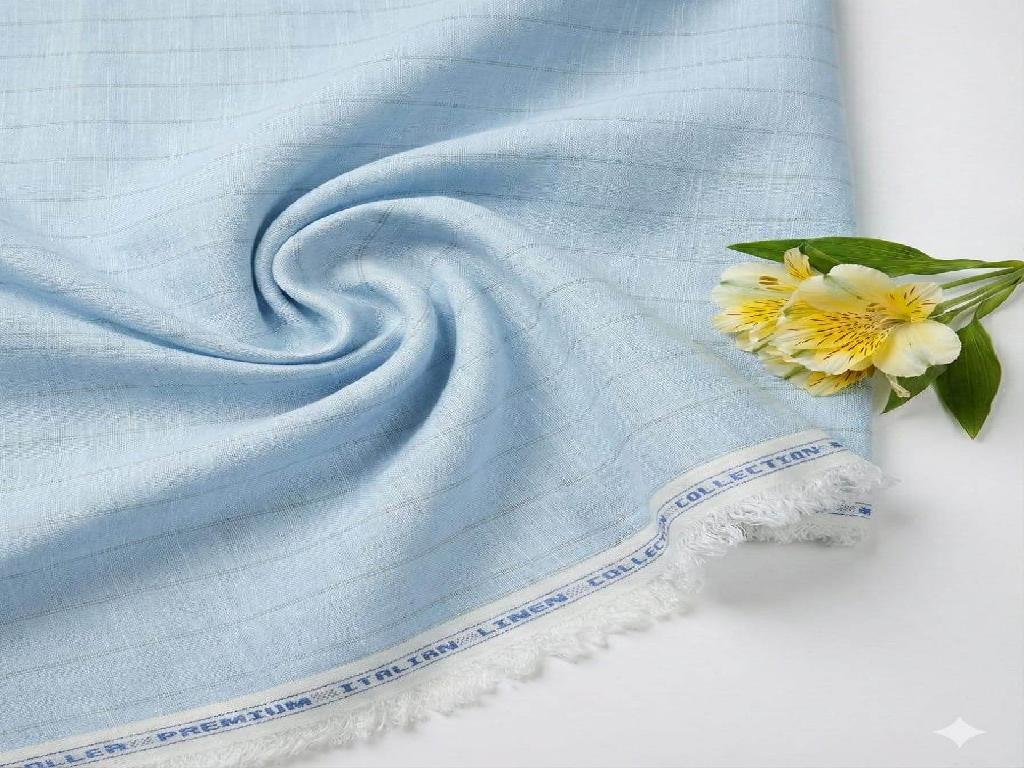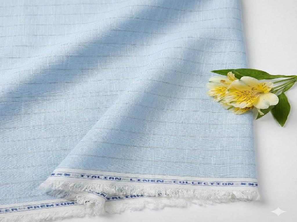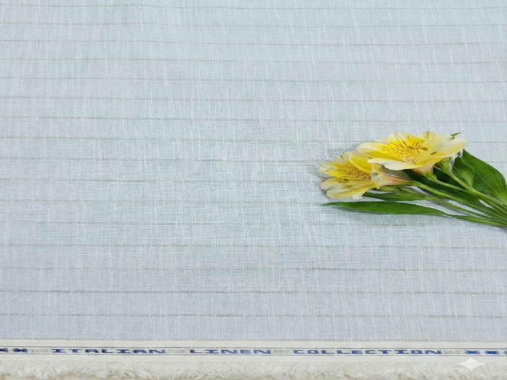 Sky Blue Premium Cotton Linen Fabric With Gray Thin Lines Fabric