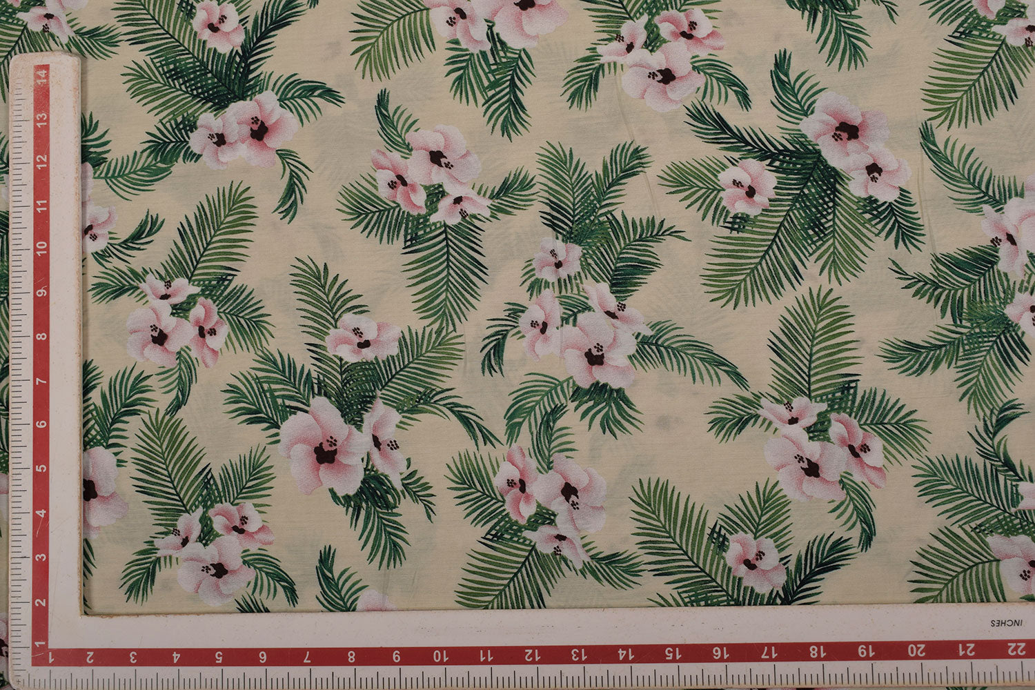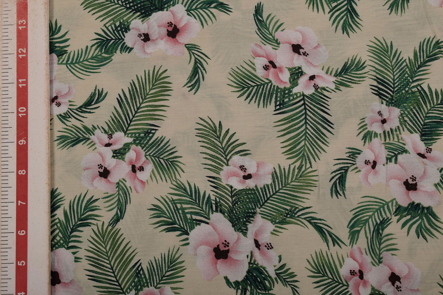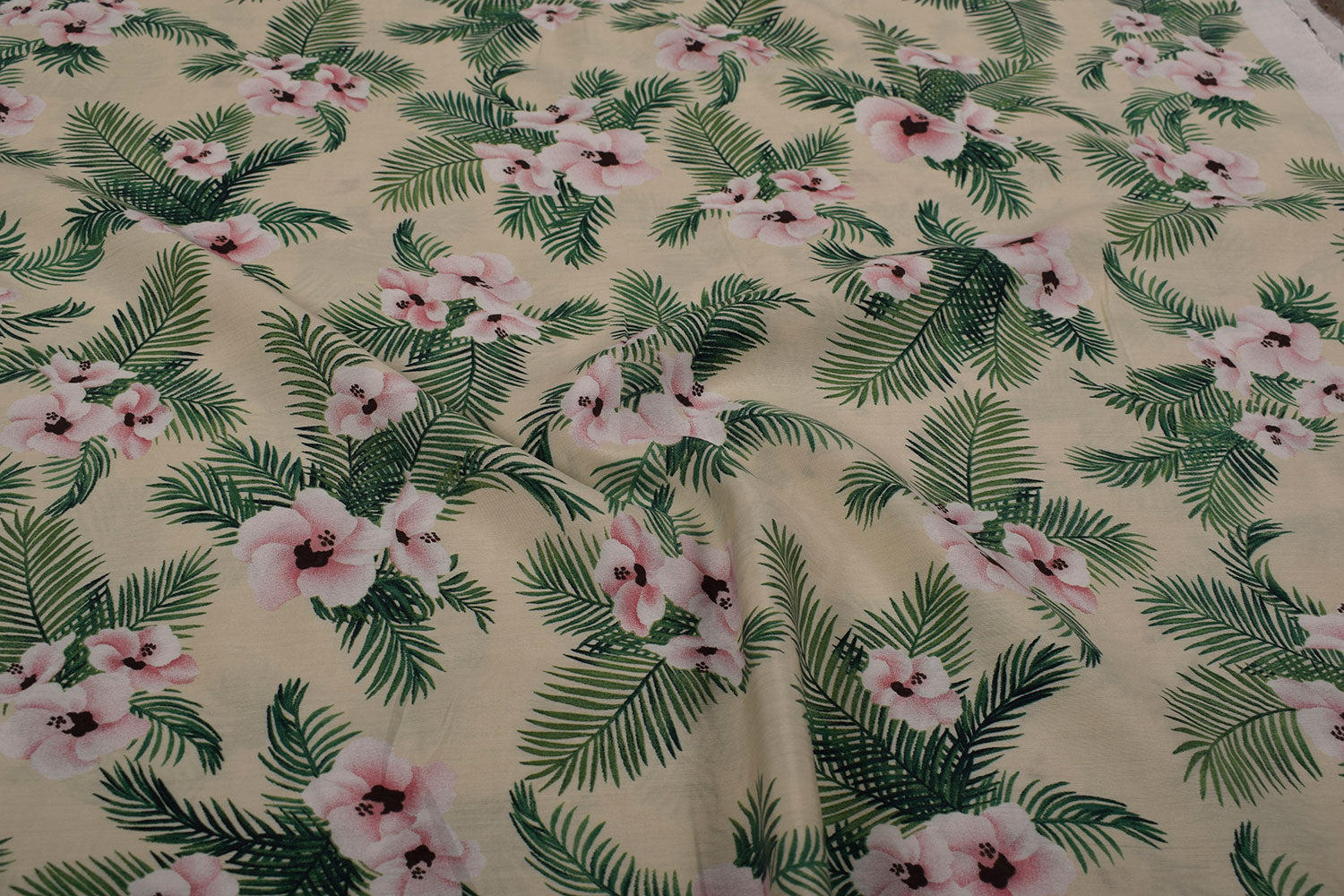 क्रीम और हरा पारंपरिक मुद्रित विस्कोस मिश्रण कपड़ा