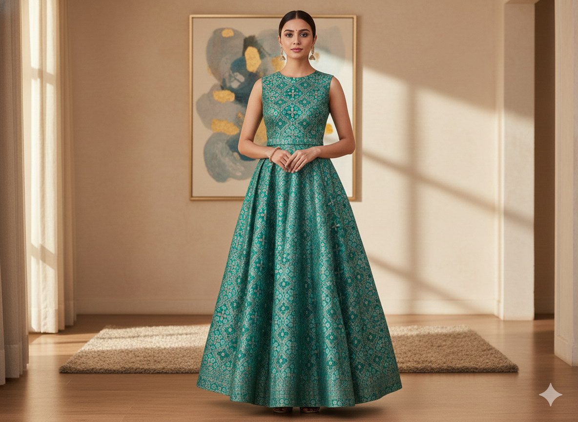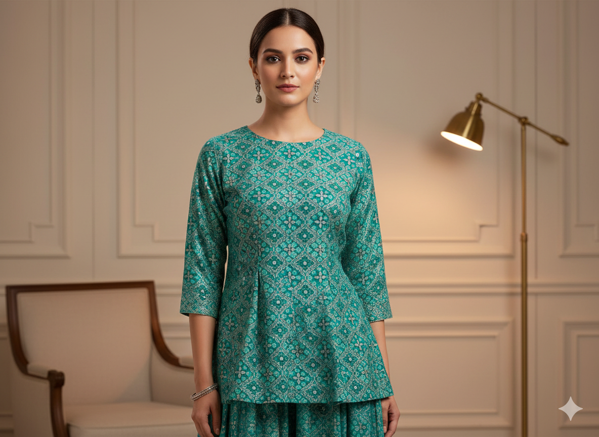 जैक्वार्ड कपड़ा एक समृद्ध बनावट वाला, बुना हुआ कपड़ा है जो अपने जटिल पैटर्न के लिए जाना जाता है जो सीधे कपड़े में बुने जाते हैं, न कि मुद्रित या कढ़ाई किए जाते हैं। कपास, रेशम, पॉलिएस्टर या मिश्रण जैसे विभिन्न रेशों से बना, जैक्वार्ड टिकाऊ और शानदार है, जिसमें फूलों और पैस्ले से लेकर ज्यामितीय और डैमास्क तक के डिज़ाइन हैं। इसके थोड़े उभरे हुए पैटर्न इसे एक परिष्कृत, त्रि-आयामी रूप देते हैं। साड़ियों, लहंगों, जैकेटों, असबाब और घर की सजावट के लिए आदर्श, जैक्वार्ड कपड़ा फैशन और इंटीरियर दोनों में लालित्य, गहराई और एक कालातीत आकर्षण जोड़ता है।