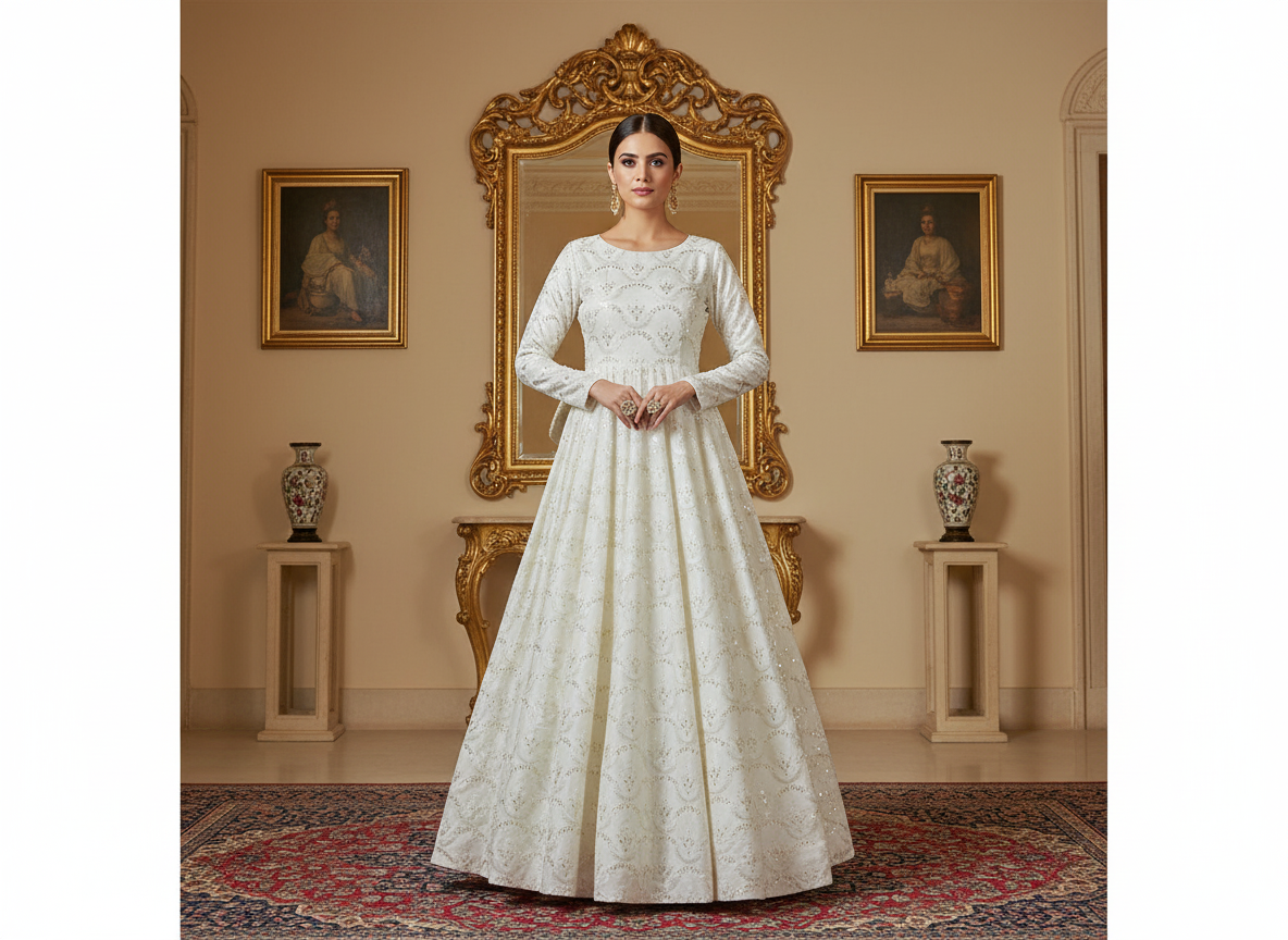 सफेद धातुई सेक्विन कढ़ाई मलाई साटन कपड़ा