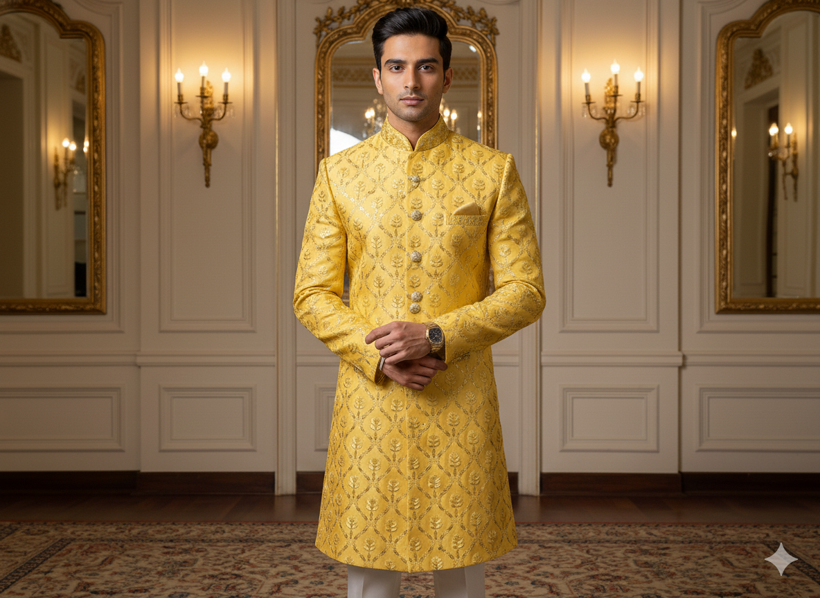 नींबू पीला धातुई सेक्विन कढ़ाई मलाई साटन कपड़ा