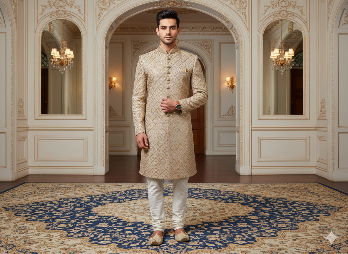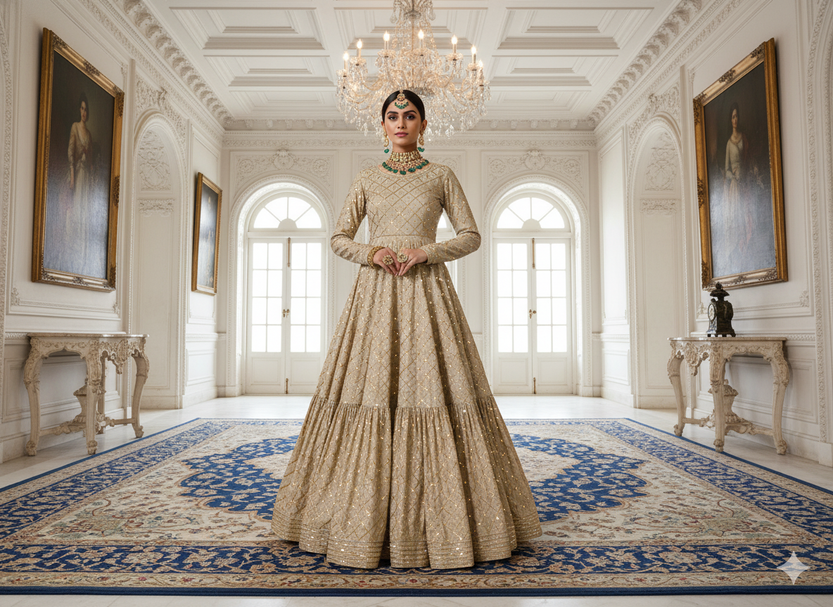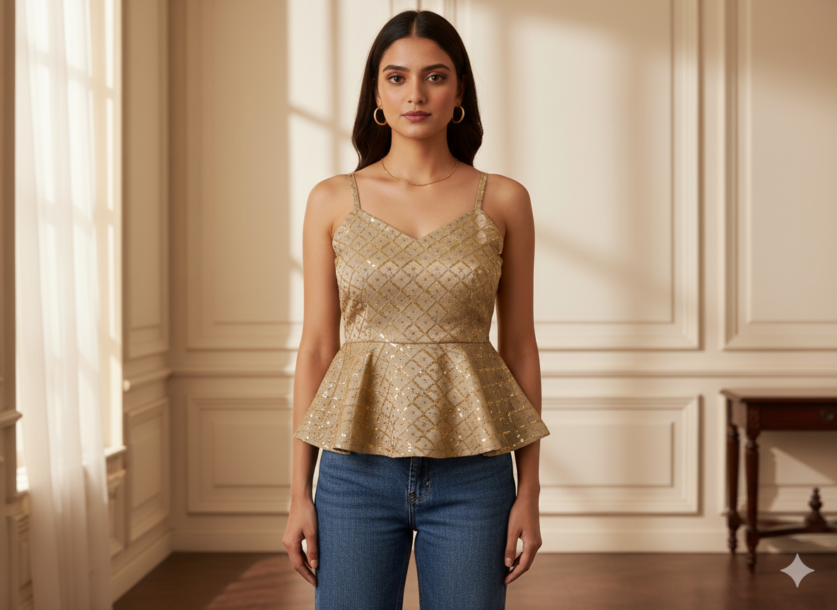 हल्के सुनहरे धातुई सेक्विन कढ़ाई मलाई साटन कपड़ा