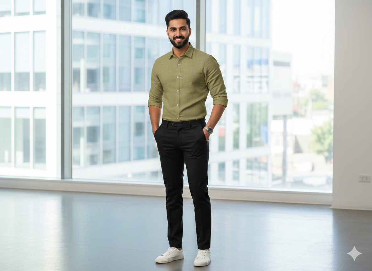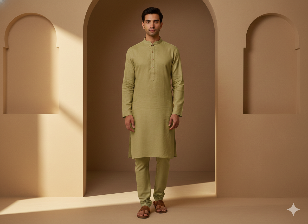 हल्का जैतून हरा सूती लिनन कपड़ा