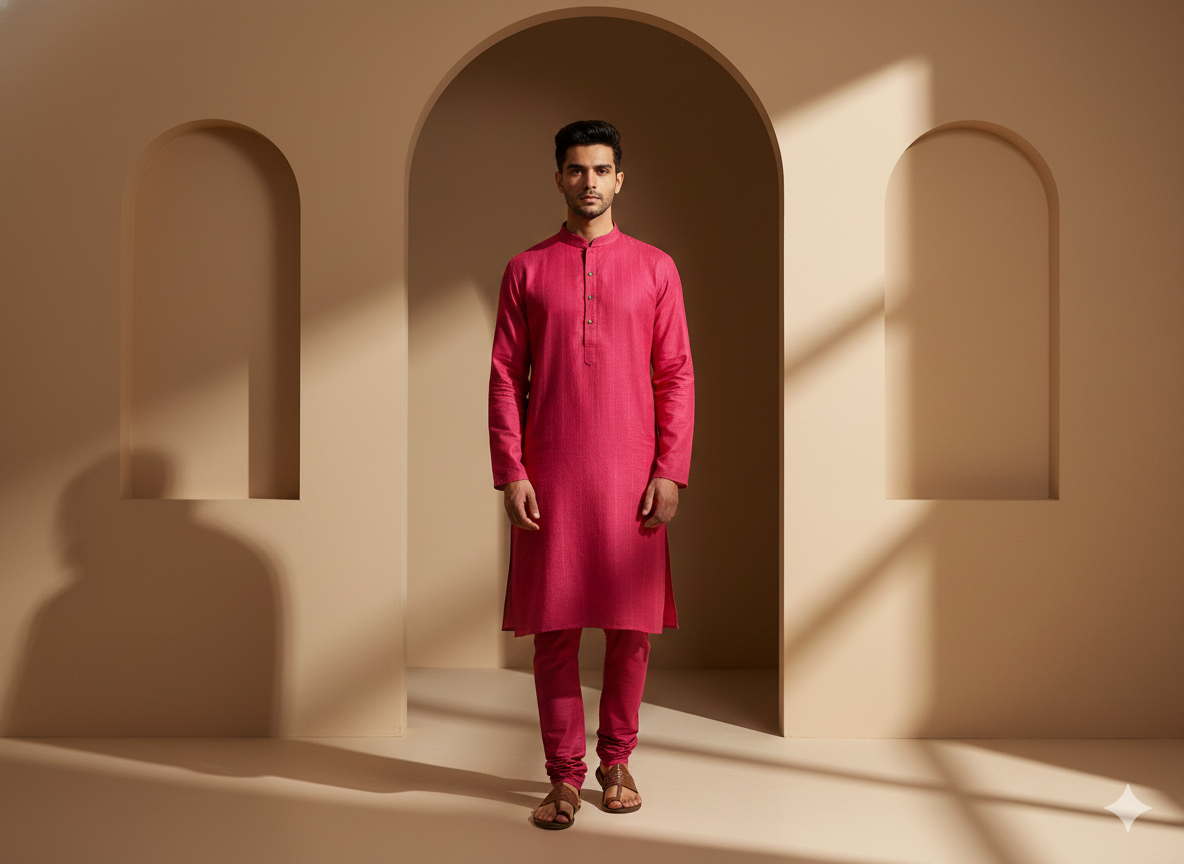मैजेंटा कॉटन लिनन फ़ैब्रिक
