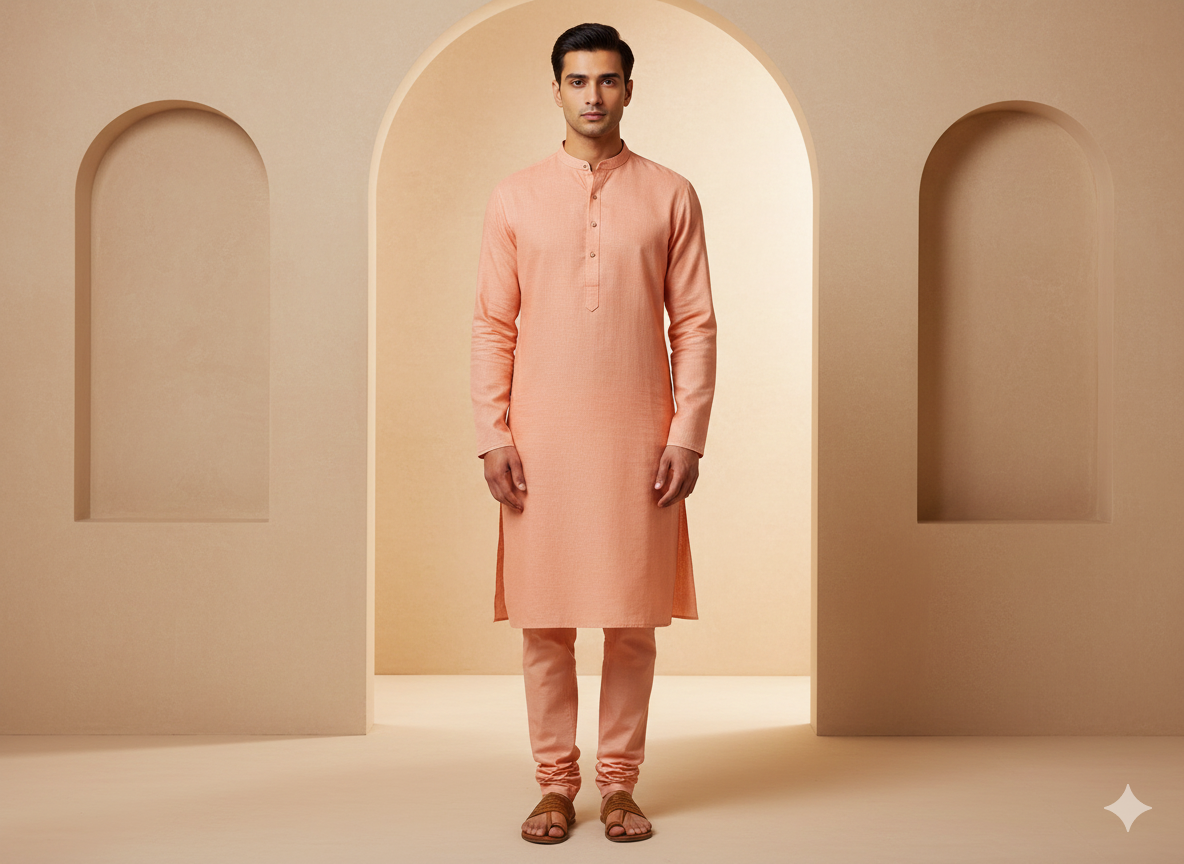पीच ऑरेंज सादा कॉटन लिनन कपड़ा