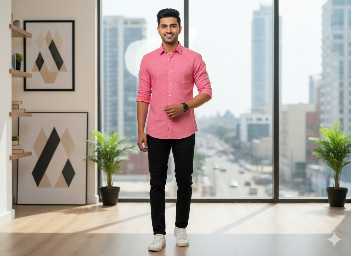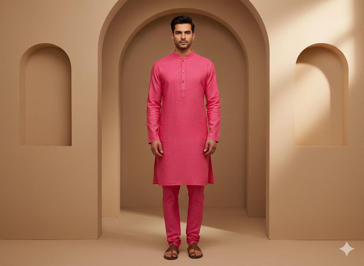 गुलाबी सादा कॉटन लिनन कपड़ा