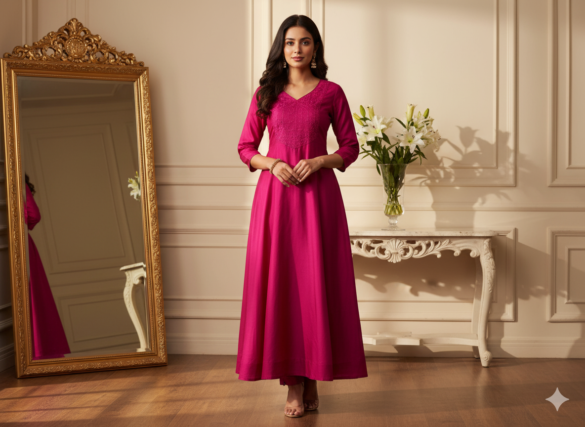 प्लेन प्योर विस्कोस गाजी सिल्क फैब्रिक एक शानदार, मुलायम कपड़ा है जो रेशम की नाजुक चमक को विस्कोस की चिकनी बनावट के साथ जोड़ता है। गाजी सिल्क, एक प्रकार का उच्च गुणवत्ता वाला रेशम है, जिसे एक सूक्ष्म चमकदार फिनिश के साथ एक समृद्ध, चिकनी सतह बनाने के लिए बुना जाता है। यह कपड़ा हल्का है, फिर भी इसमें घना, संरचित एहसास है, जो इसे औपचारिक और अर्ध-औपचारिक दोनों तरह के परिधानों में खूबसूरती से लपेटने के लिए आदर्श बनाता है। कपड़े की सादी बुनाई सूक्ष्म गहराई और प्रवाह के साथ एक साफ, परिष्कृत रूप सुनिश्चित करती है, और यह विभिन्न रंगों में उपलब्ध है। विस्कोस घटक सांस लेने की क्षमता, नमी अवशोषण और एक नरम स्पर्श में योगदान देता है, जिससे यह कपड़ा ड्रेस, ब्लाउज, स्कार्फ और हल्के शाम के पहनने के लिए एकदम सही है। यह शुद्ध रेशम की तुलना में अपने स्थायित्व और देखभाल में आसानी के लिए भी जाना जाता है, हालांकि यह अभी भी एक सुंदर लालित्य और परिष्कृत अपील बनाए रखता है।