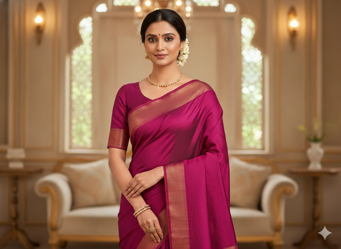 चमकदार मैजेंटा सादा शुद्ध विस्कोस गाजी सिल्क कपड़ा