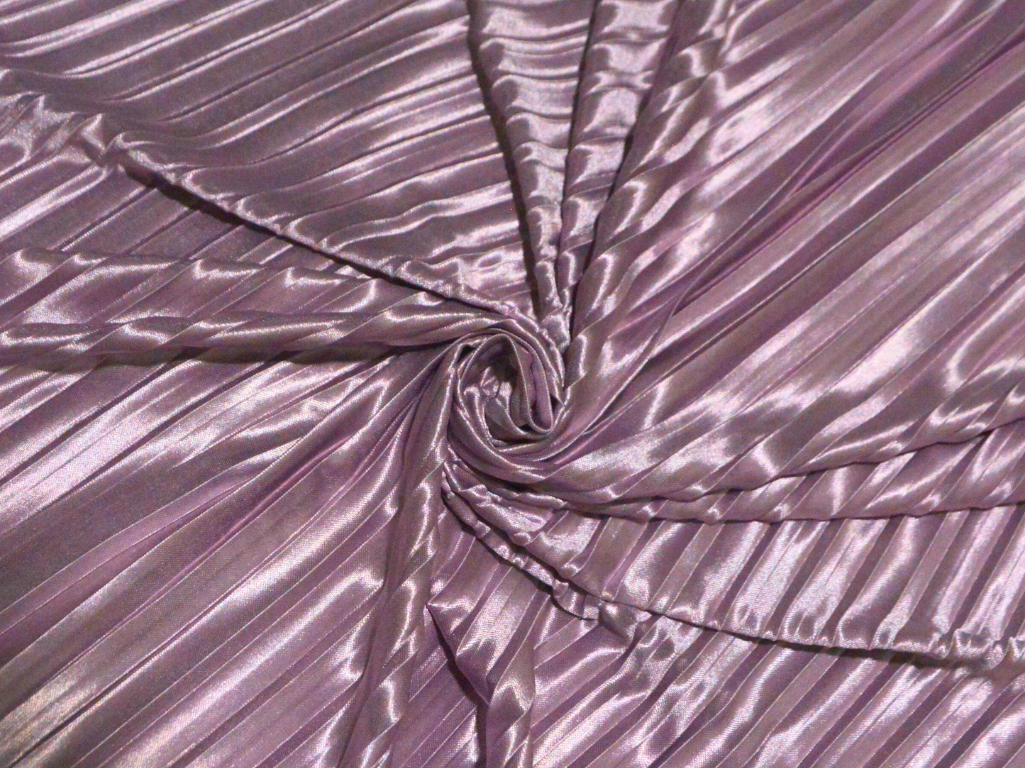 बेबी पिंक प्लेन क्रश्ड प्लीटेड साटन फ़ैब्रिक