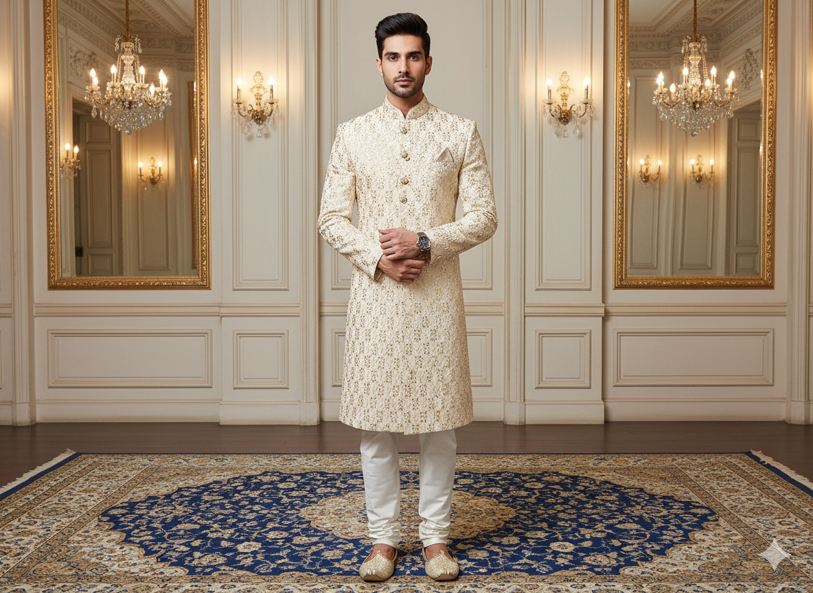 क्रीम मेटैलिक सेक्विन कढ़ाई मलाई साटन कपड़ा