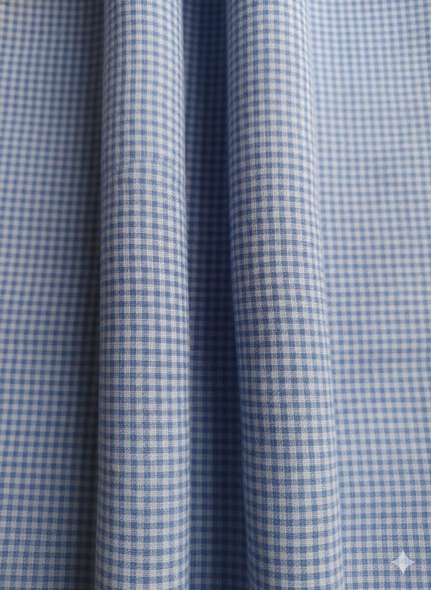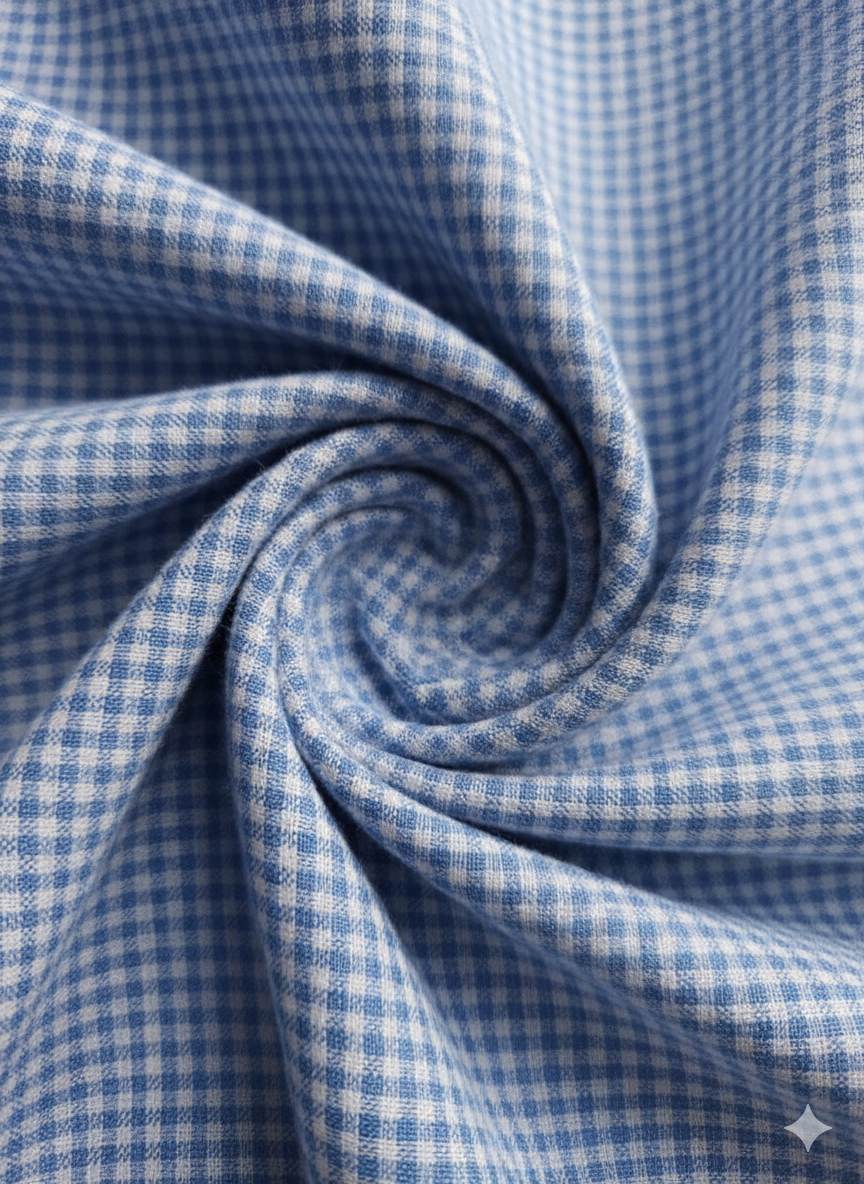 Blue and White Checks Pure Cotton Linen Fabric (60 Lea)