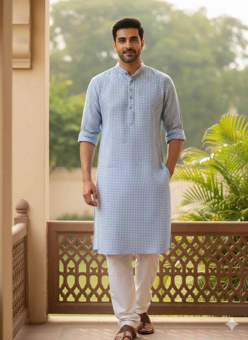 This premium 60 lea linen features a timeless blue and white check pattern, suitable for both men and women. Made from high-quality materials, it provides a comfortable and stylish option for any occasion. Upgrade your wardrobe with this versatile piece.