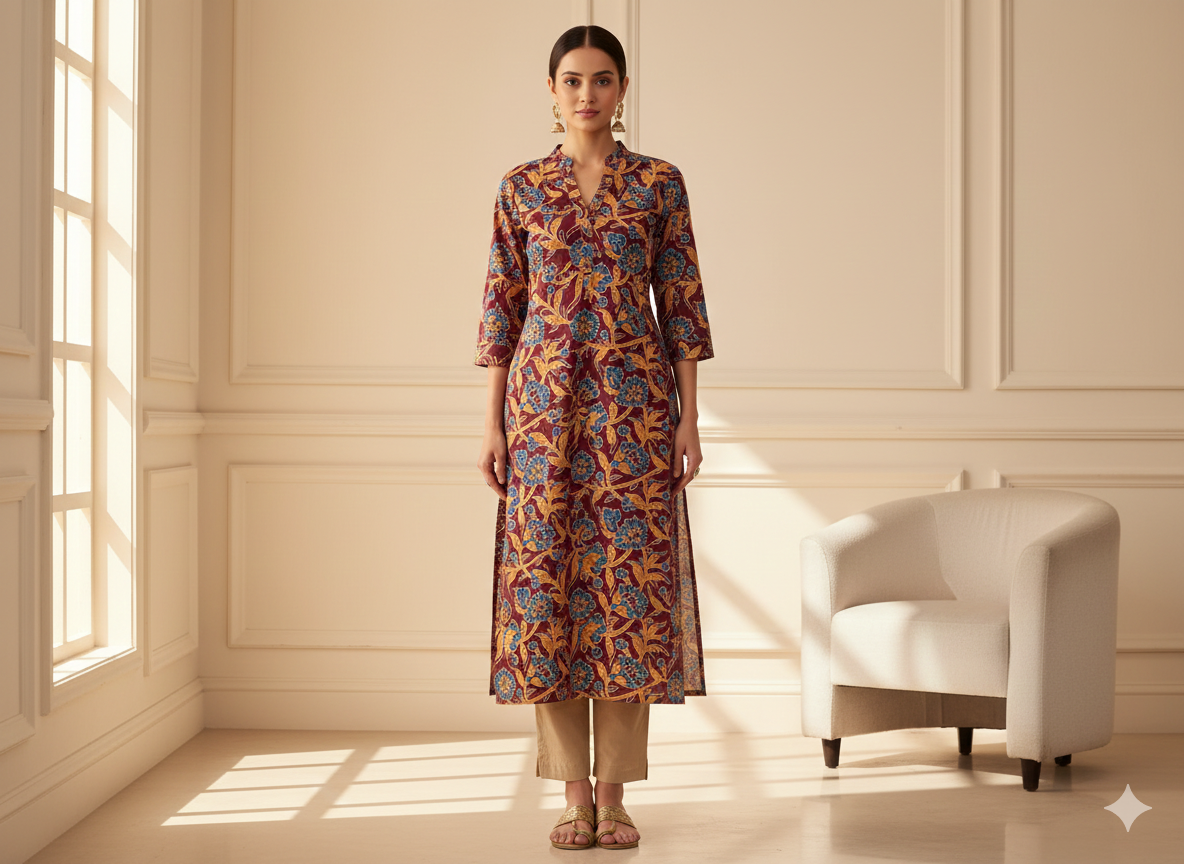 गहरे बैंगनी रंग का कलमकारी शुद्ध सूती कपड़ा