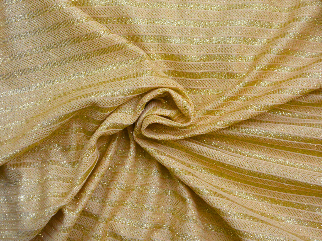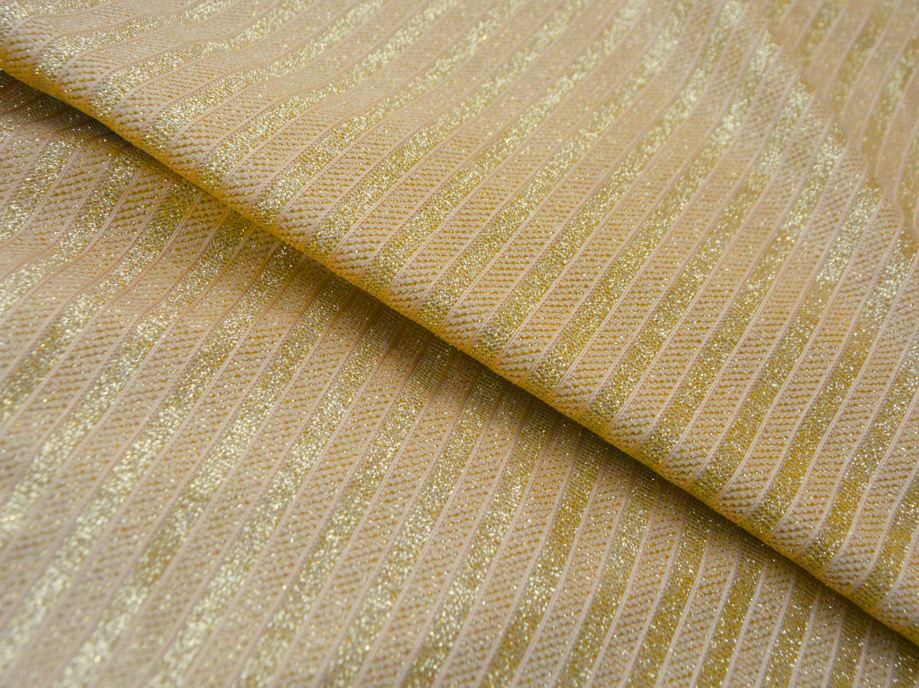 Shimmer stripes bonding fabric is a captivating and glamorous textile known for its glistening surface and versatility. Crafted from synthetic materials like polyester, it features a stripe weave structure that provides durability and flexibility. What distinguishes this fabric is its shimmer effect, often achieved through the incorporation of metallic threads or accents. This feature lends the fabric a sparkling, eye-catching quality, making it ideal for creating luxurious and attention-grabbing fashion pieces. Shimmer stripe bonding fabric is popular in the world of high fashion, frequently used for crafting elegant evening gowns, cocktail dresses, and statement accessories. Its ability to add a touch of sophistication and opulence makes it a preferred choice for those seeking to make a glamorous fashion statement.