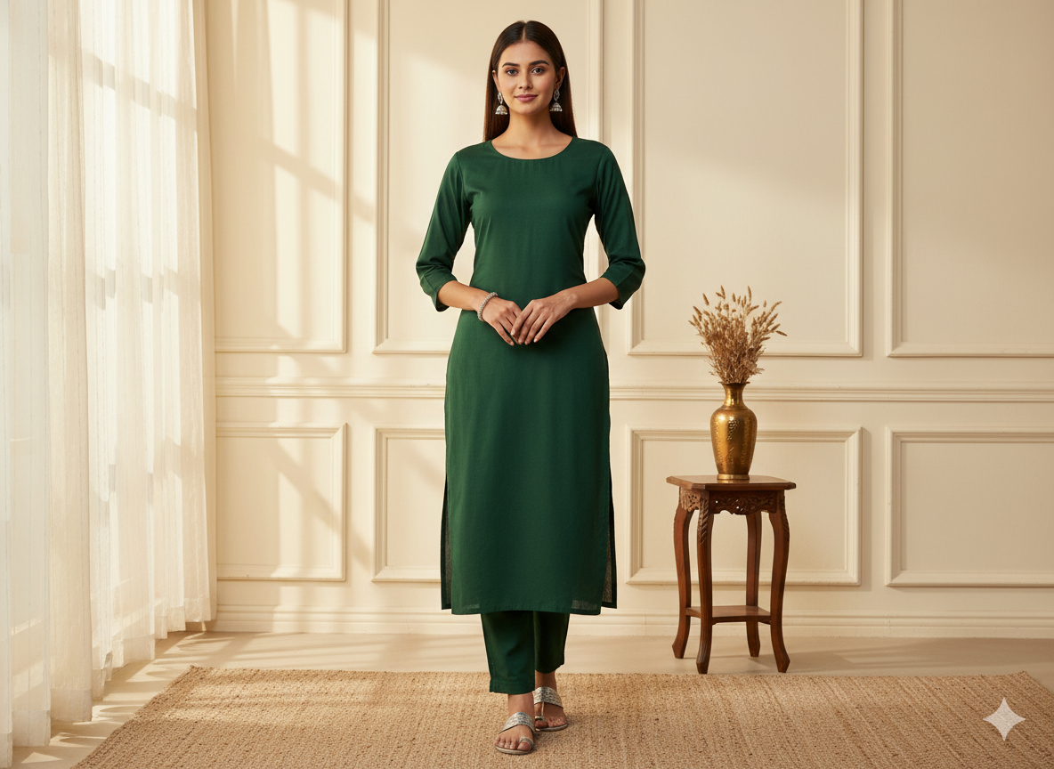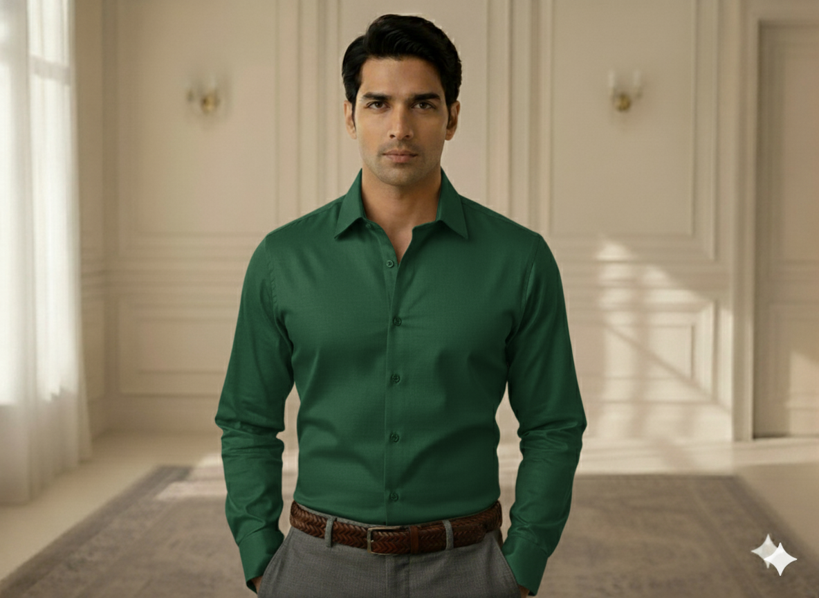 गहरा तुलसी हरा सादा ग्लेज्ड कॉटन कपड़ा