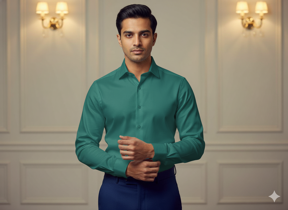 मोर टील सादा ग्लेज्ड कॉटन फ़ैब्रिक