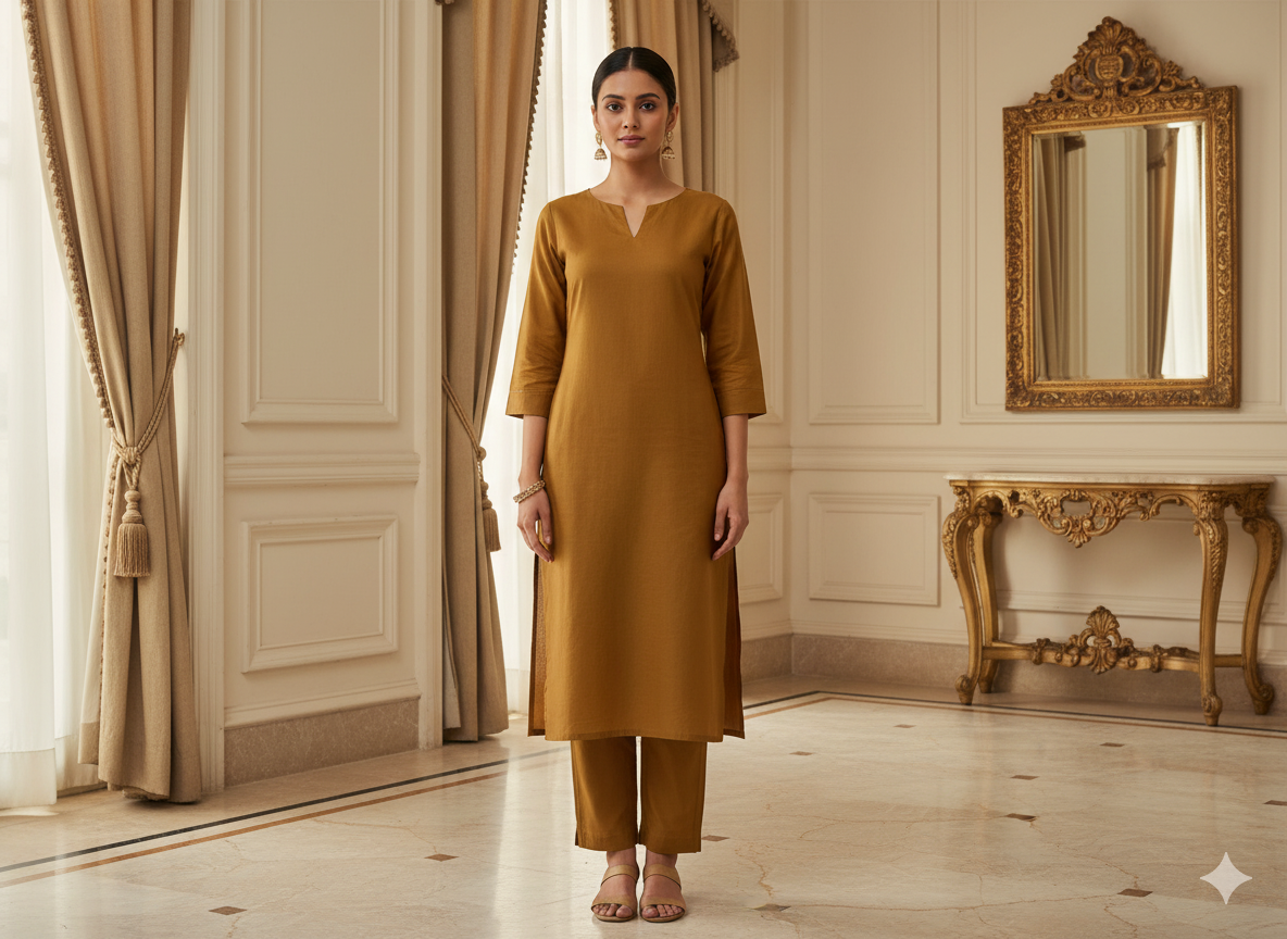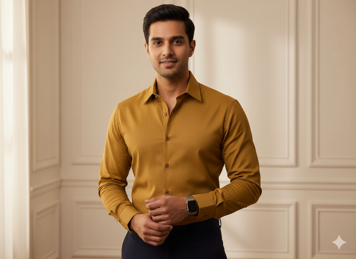 गोल्डन मस्टर्ड प्लेन ग्लेज्ड कॉटन फ़ैब्रिक