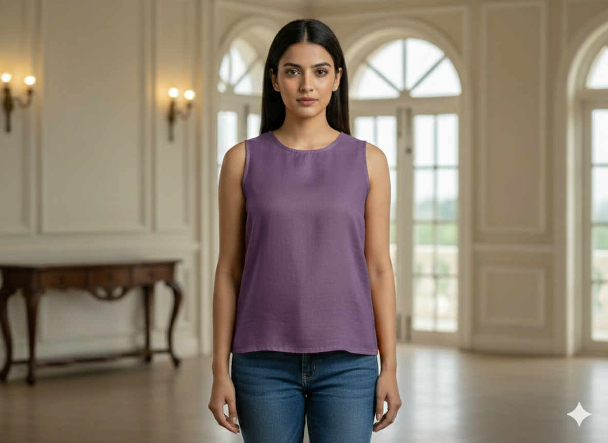 इंडिगो पर्पल प्लेन ग्लेज्ड कॉटन फ़ैब्रिक