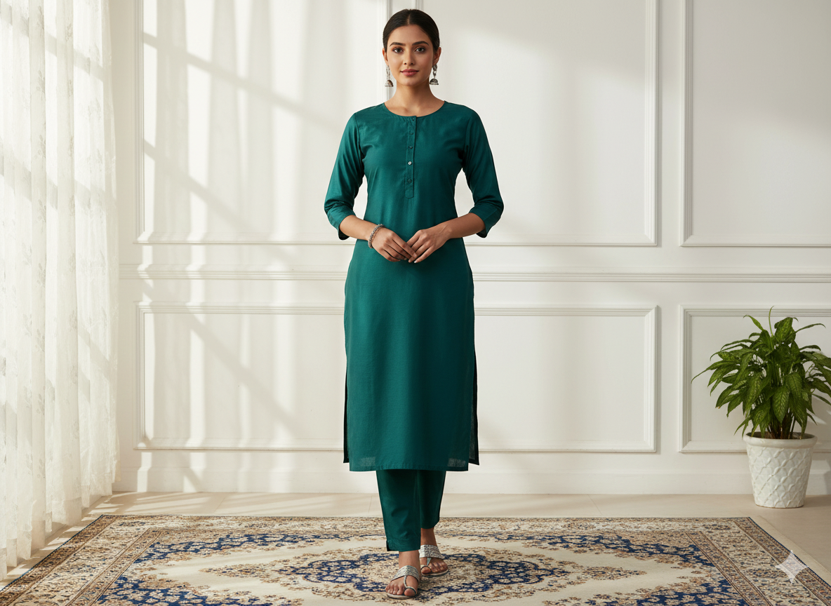 पॉलिएस्टर कॉटन फ़ैब्रिक एक बहुमुखी मिश्रण है जो कॉटन की सांस लेने की क्षमता को पॉलिएस्टर के स्थायित्व के साथ जोड़ता है। यह फ़ैब्रिक कपड़ों, होम टेक्सटाइल और असबाब सहित कई तरह के अनुप्रयोगों के लिए आदर्श है। इसकी मुलायम बनावट और आसान देखभाल के गुण इसे रोज़ाना पहनने और बिस्तर के लिए पसंदीदा बनाते हैं। पॉलिएस्टर घटक शिकन प्रतिरोध और दीर्घायु को बढ़ाता है, जबकि कपास आराम और नमी अवशोषण सुनिश्चित करता है। स्टाइलिश, लंबे समय तक चलने वाले परिधान और साज-सज्जा बनाने के लिए बिल्कुल सही, यह फ़ैब्रिक गुणवत्ता और सुविधा चाहने वालों के लिए एक व्यावहारिक विकल्प है। अपने अगले सिलाई प्रोजेक्ट के लिए पॉलिएस्टर कॉटन फ़ैब्रिक ऑनलाइन खरीदें और आराम और स्थायित्व के सही संतुलन का अनुभव करें।