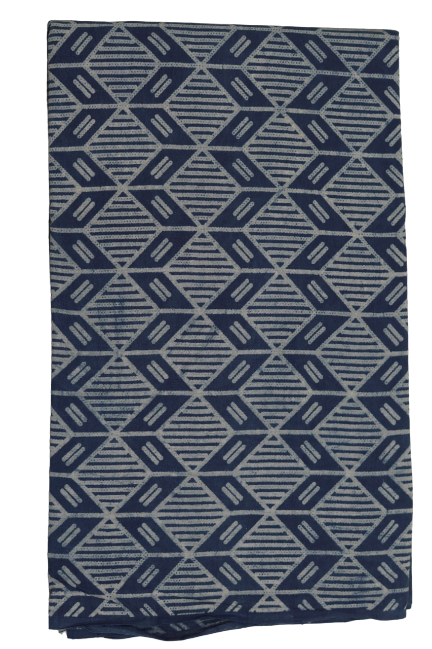 नीला और सफेद पारंपरिक मुद्रित डब्बू प्रिंट सूती कपड़ा