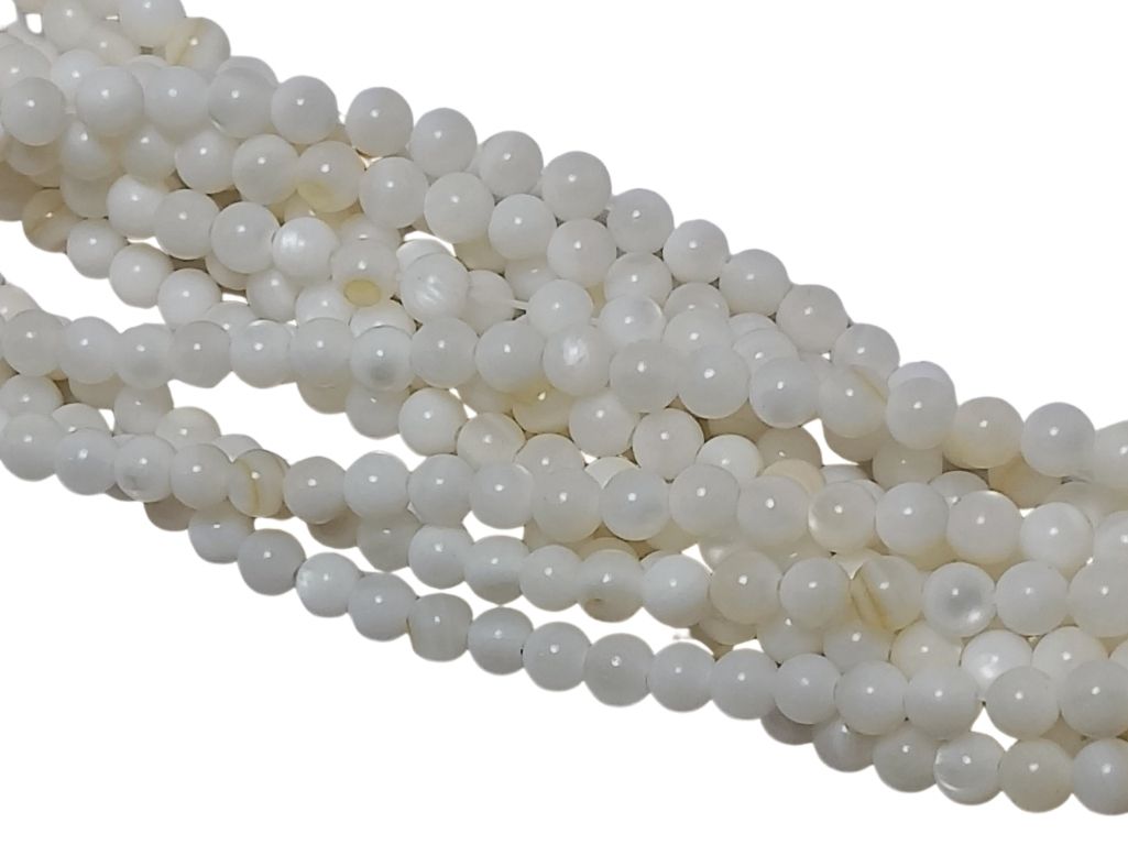 1 String has 140 pieces. Glossy mother of pearl beads are elegant and timeless, prized for their smooth, iridescent surface that reflects a soft, natural glow. Made from the inner lining of mollusk shells, these beads display a stunning range of colors—subtle whites, creamy tones, silvery grays, and hints of pink, blue, or green—depending on how the light hits them. Their glossy finish enhances their luminous quality, giving them a polished and luxurious appearance. Often used in jewelry making, embroidery, and decorative crafts, mother of pearl beads add a touch of sophistication and organic beauty to any design. Their smooth texture and delicate shimmer make them a favorite for both modern and vintage-inspired creations.