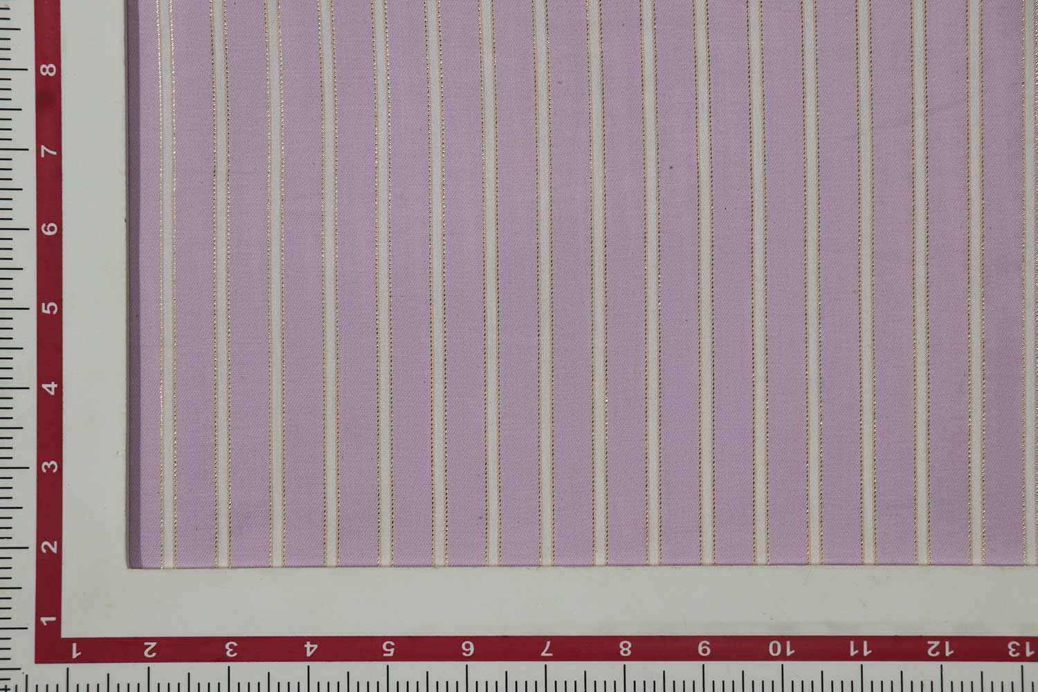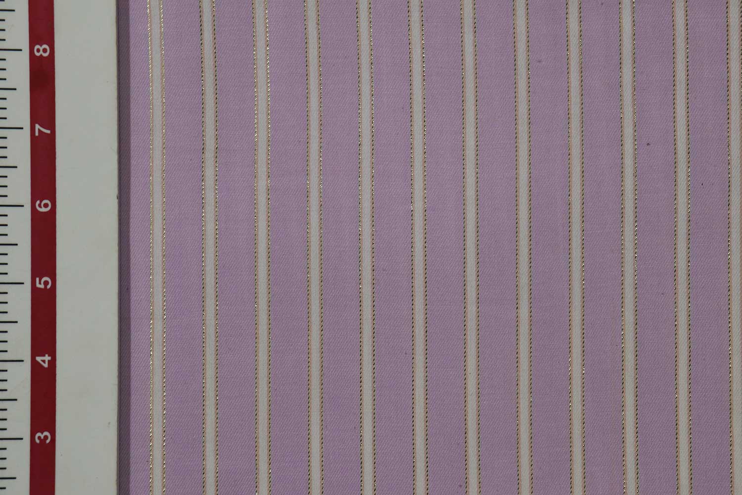 हल्के बैंगनी और सफेद धारियों वाला कॉटन मिश्रित यार्न रंगा कपड़ा