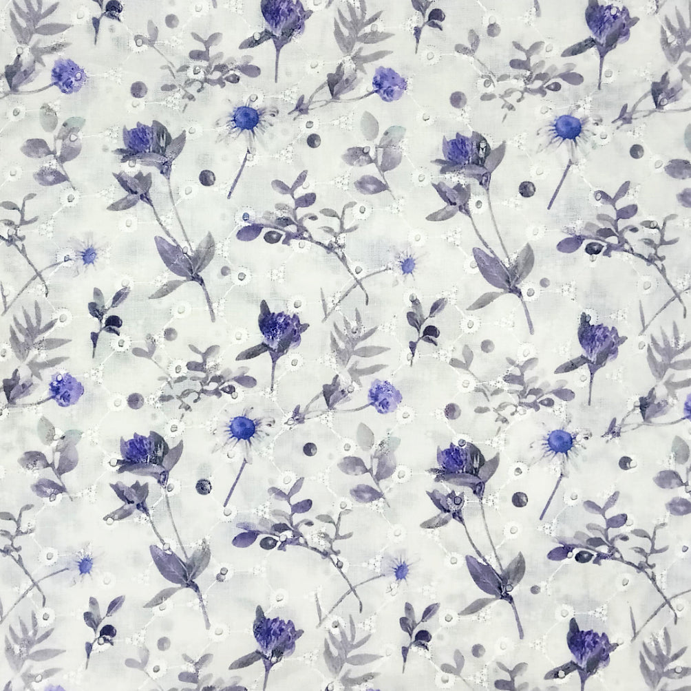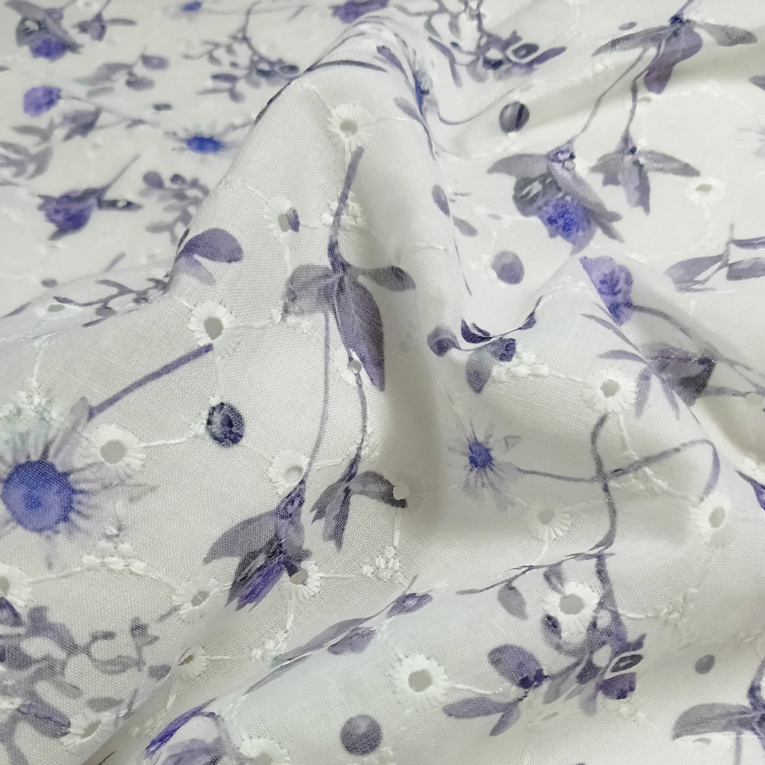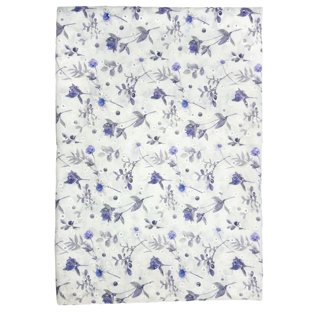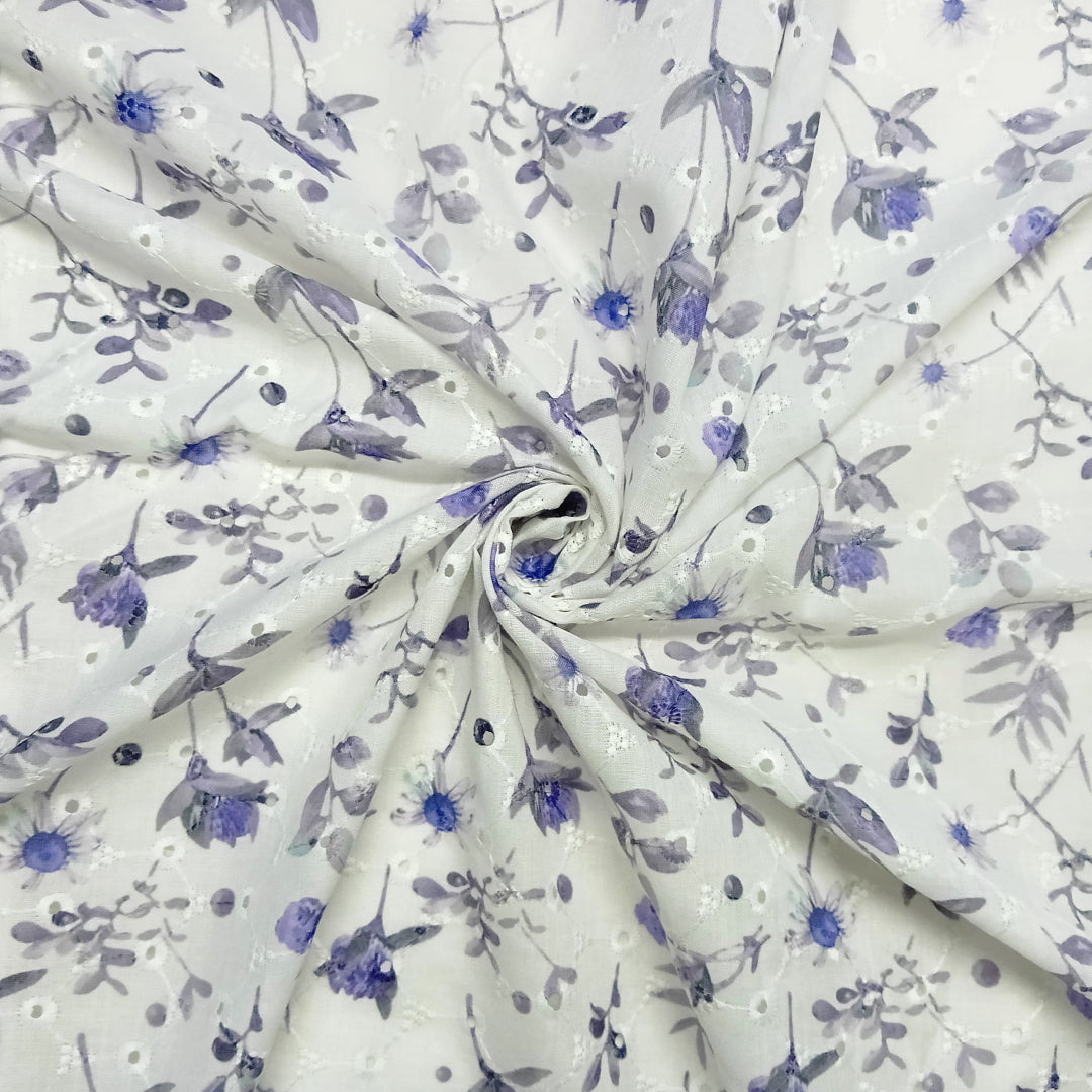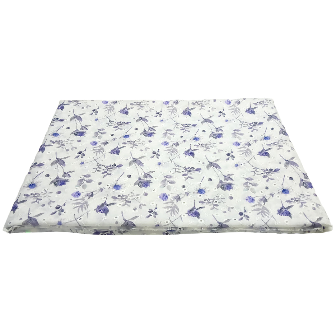 सफेद पुष्प कढ़ाई हाथ ब्लॉक मुद्रित शिफली सूती कपड़ा