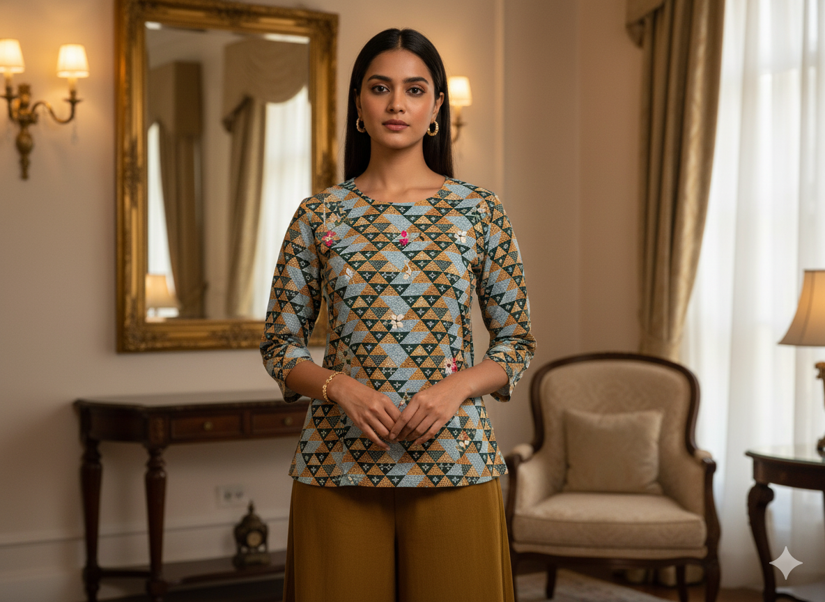 Prints: High-resolution digital prints (florals, abstracts, ethnic, etc.)
