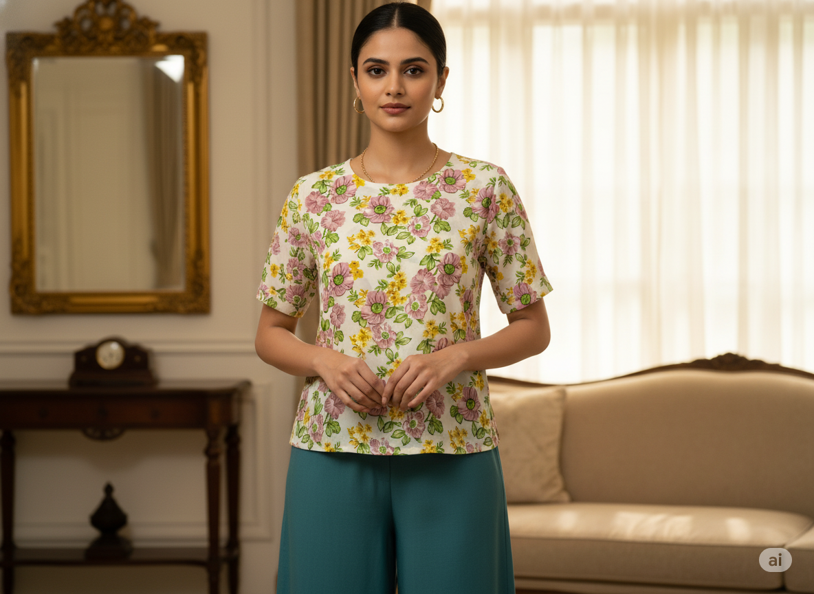Prints: High-resolution digital prints (florals, abstracts, ethnic, etc.)