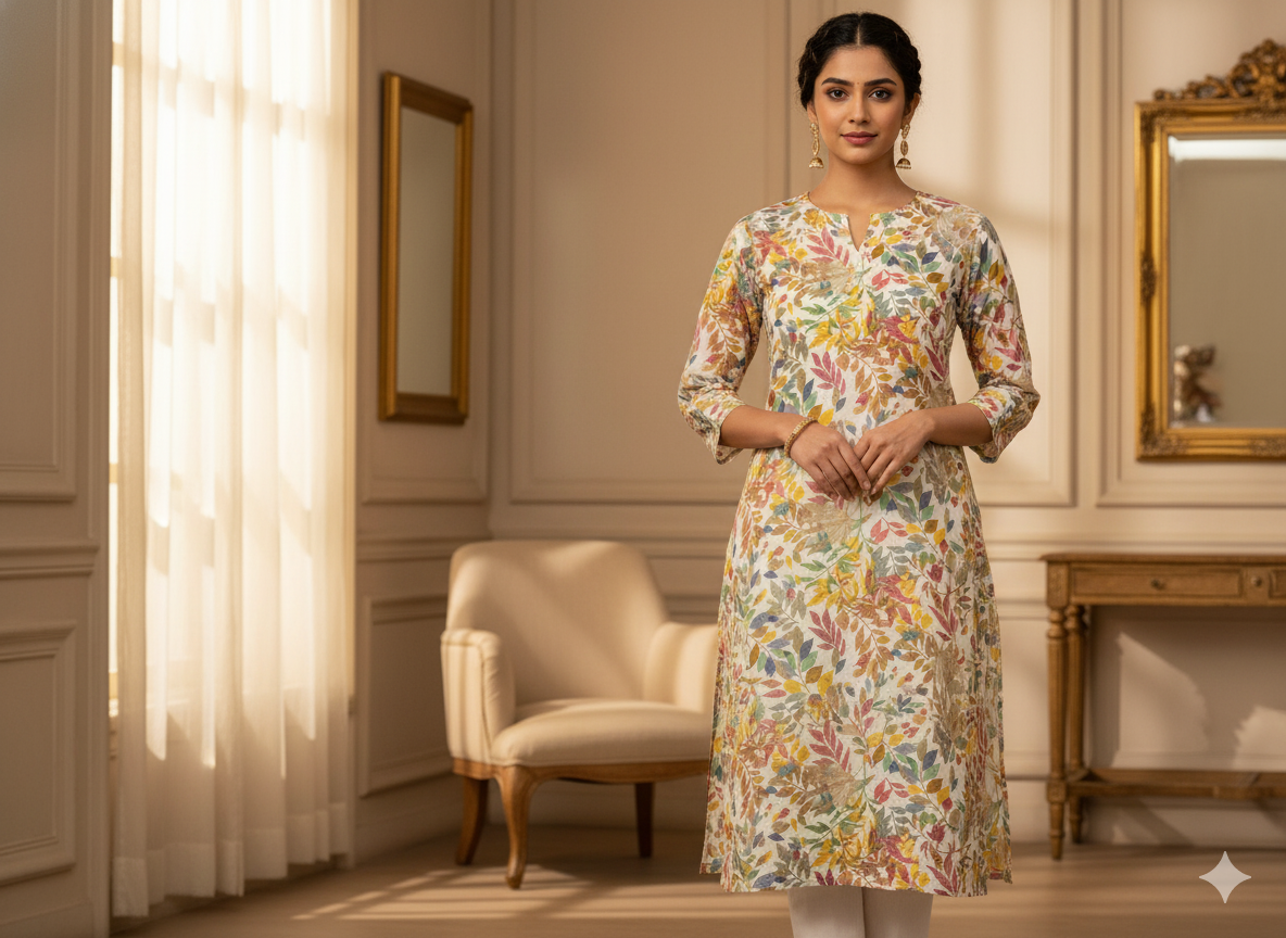 Pure Mul Mul Cotton Mul Mul Chikan embroidered fabric is a lightweight, breathable textile known for its intricate hand embroidery, originally from Lucknow, India. Made from 100% Mul Mul Cotton Mul Mul, this fabric features delicate, white-on-white or colored thread embroidery using traditional Chikankari techniques. The designs often include floral patterns, paisleys, and fine motifs, giving the fabric a graceful and elegant appearance. It is ideal for making ethnic wear like kurtas, sarees, and dupattas, as well as contemporary outfits due to its comfort and timeless aesthetic. Chikan embroidery adds a touch of subtle elegance, making this fabric popular for both casual and festive occasions.