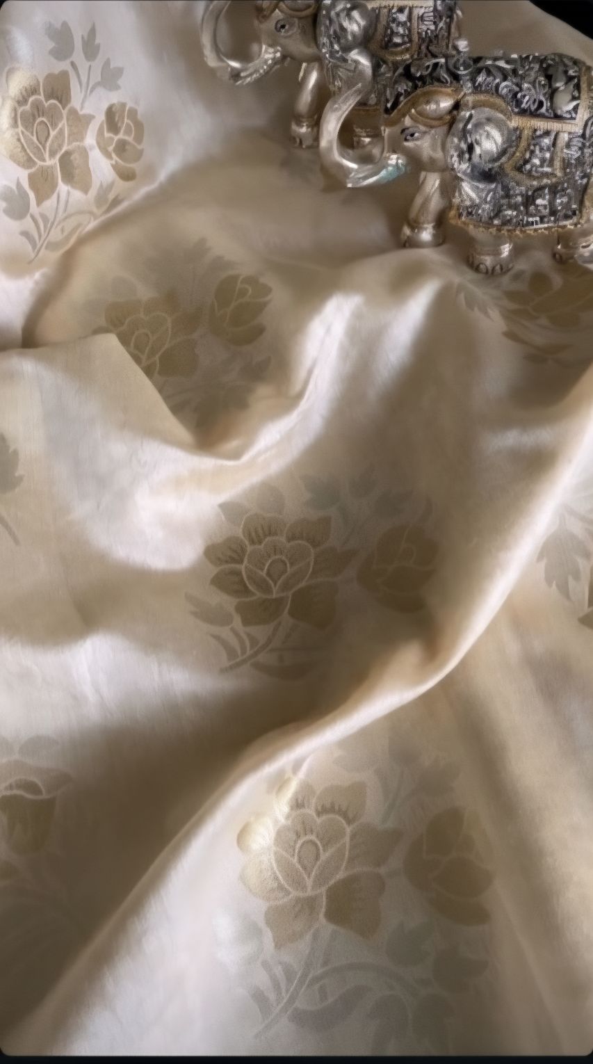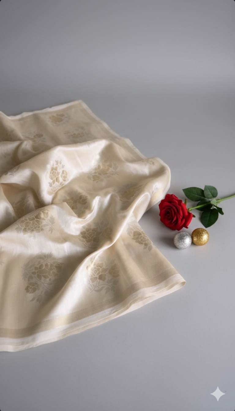 Beige Floral Dyeable Self Textured Chanderi Jacquard Fabric