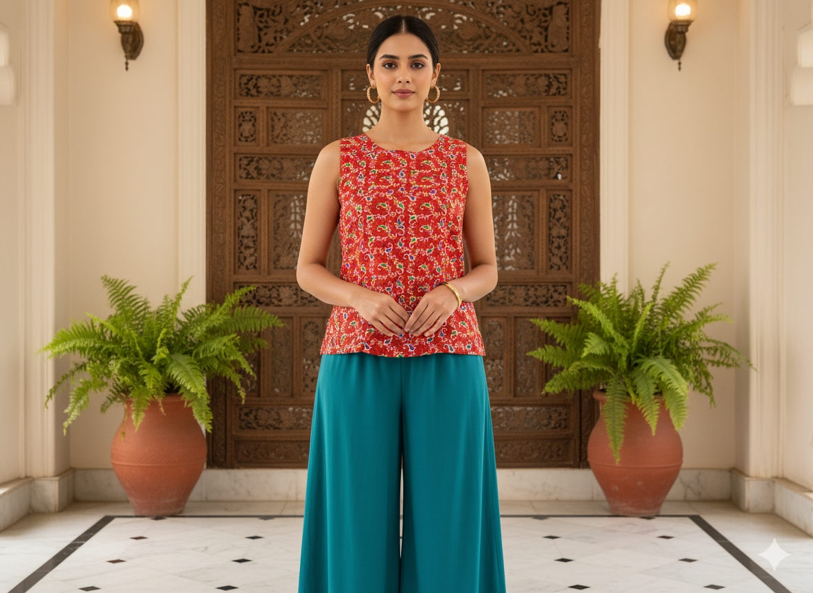 Digitally Printed Butter Crepe Fabric is a soft, lightweight, and flowy synthetic fabric that is digitally printed with various designs. Here's a full breakdown: Fabric Name: Butter Crepe (Digitally Printed) Material: Usually polyester or a polyester blend Texture: Smooth, slightly crinkled, and soft to the touch (hence ""butter"") Weight: Light to medium-weight Stretch: Typically slight to moderate stretch, depending on the blend Finish: Matte or semi-matte, not shiny Prints: High-resolution digital prints (florals, abstracts, ethnic, etc.) Drape: Excellent drape, flows well Durability: Wrinkle-resistant and strong