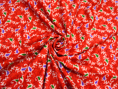 Blood Red Leaf Digitally Printed Butter Crepe Fabric