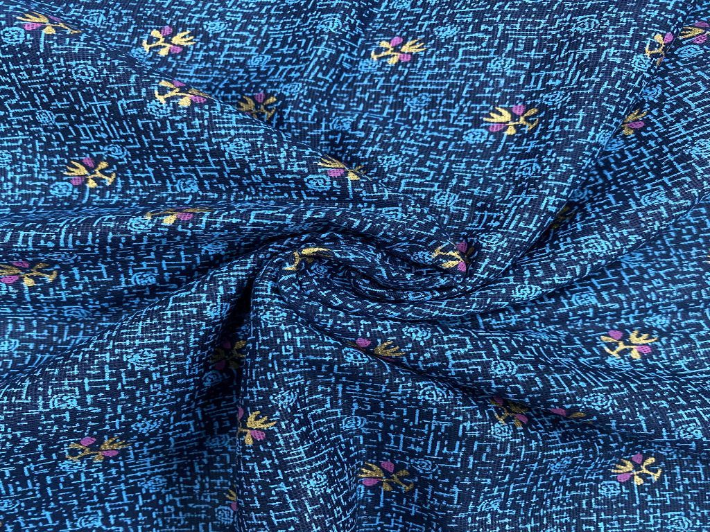 Blue Floral Motifs Printed Pure Cotton Fabric