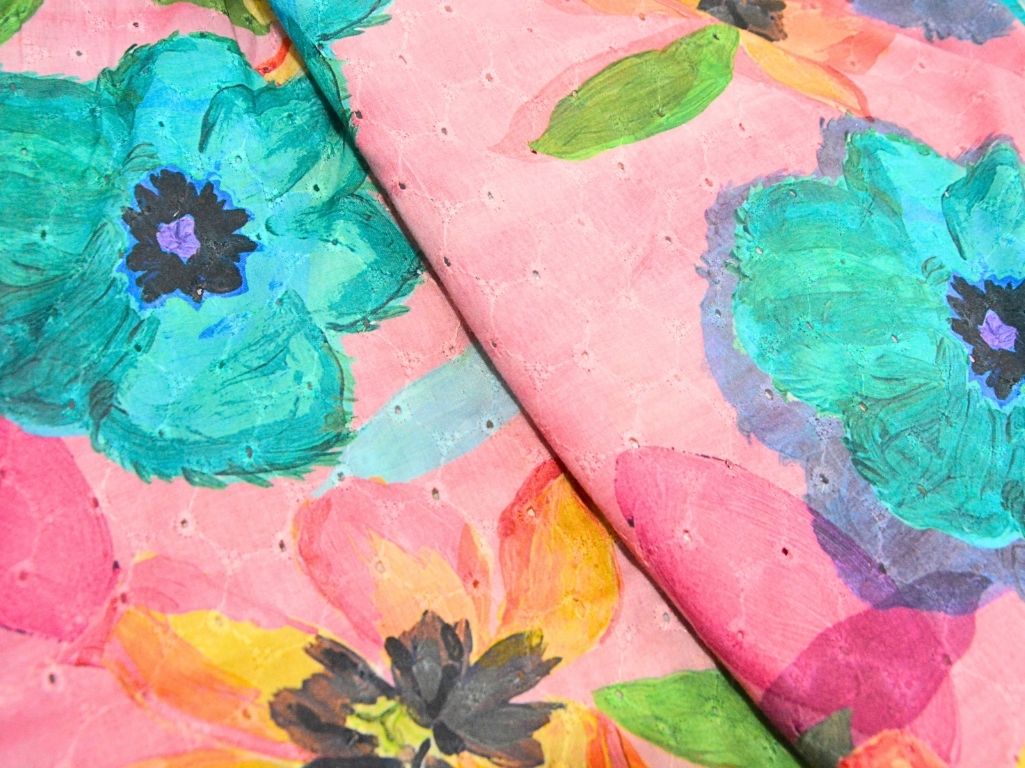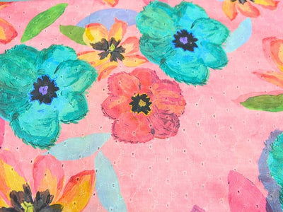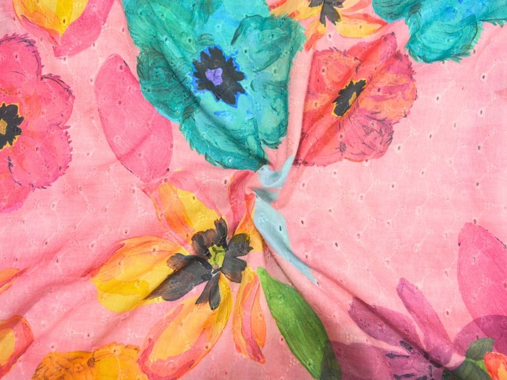 Blush Pink 100 % Pure Cotton Chikan Embroidered Fabric