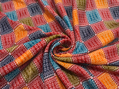 Bright Red Diamond Digitally Printed Butter Crepe Fabric