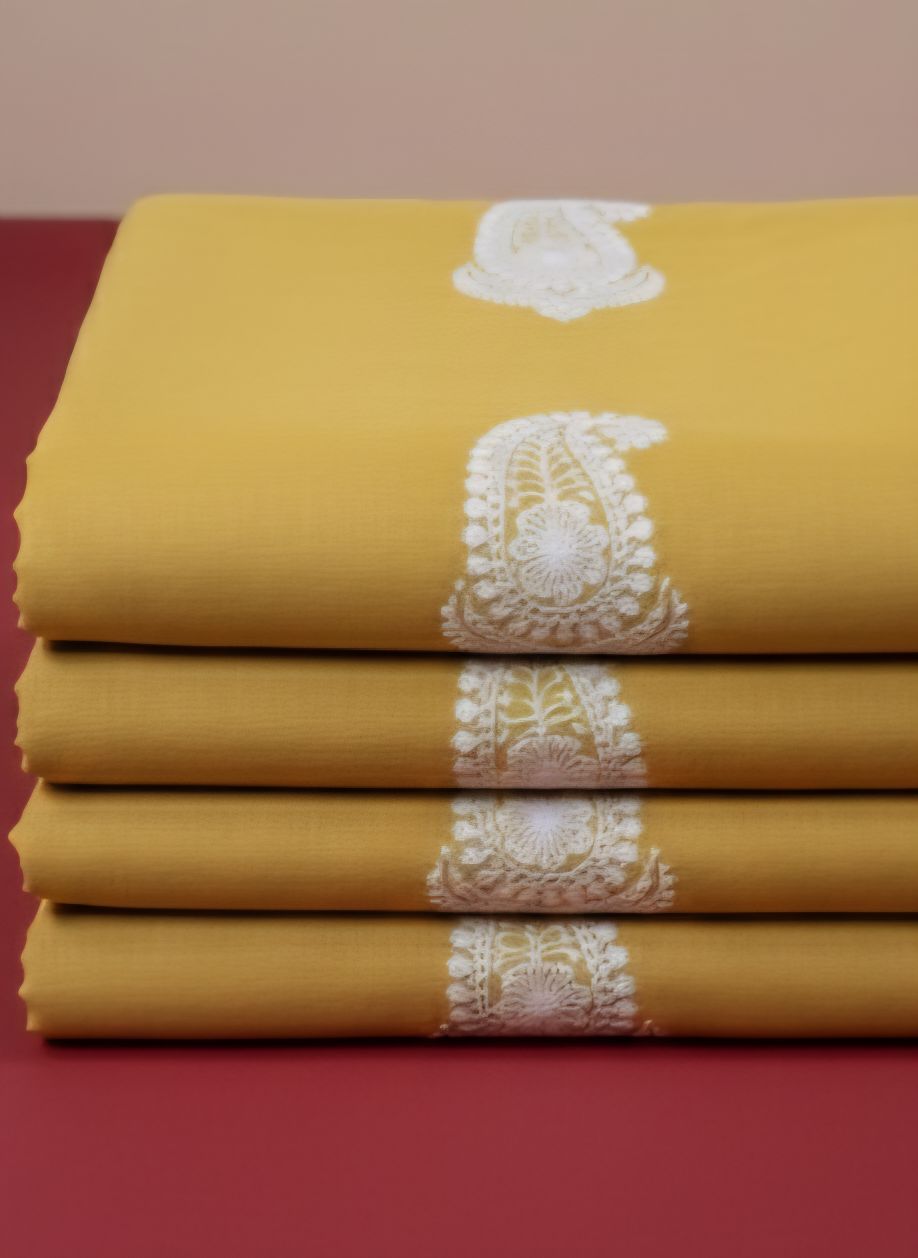 Chikankari Embroidered Lemon Yellow Chanderi Silk Fabric