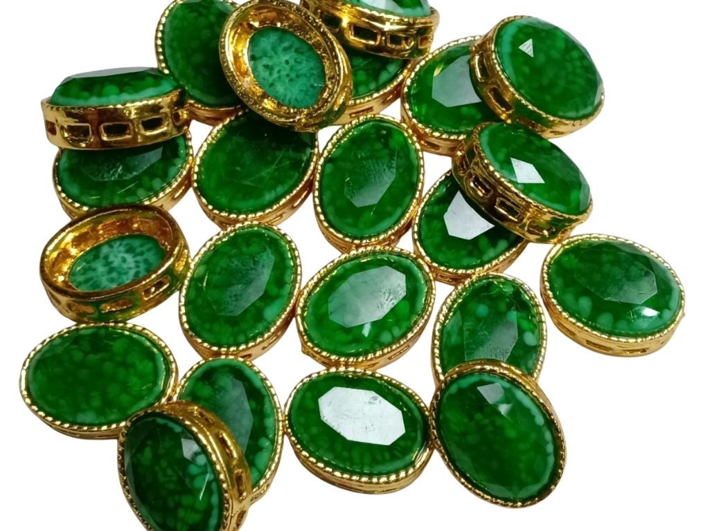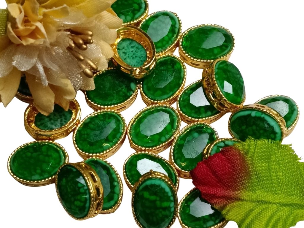 Dark Green Oval Shaped Resin Stones with Metal Catcher
