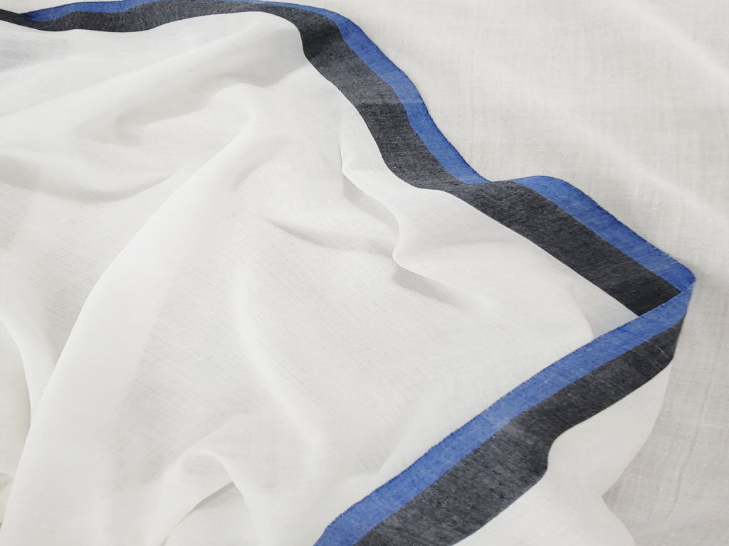 Fine White Cotton Khadi with Black Blue Border Fabric