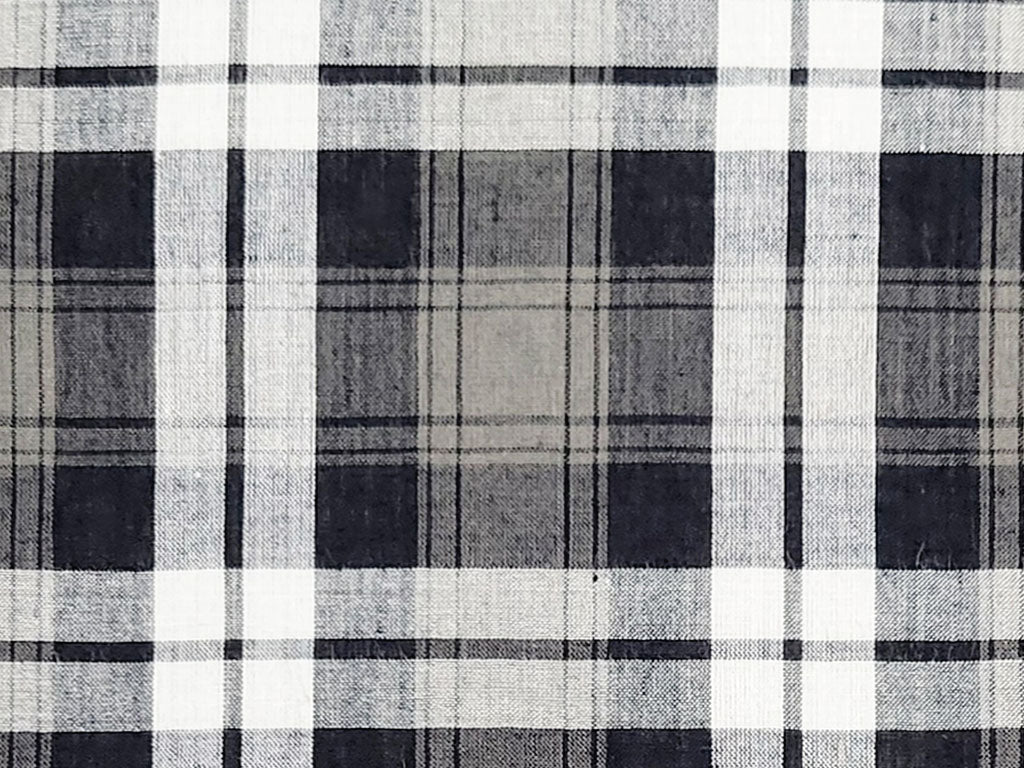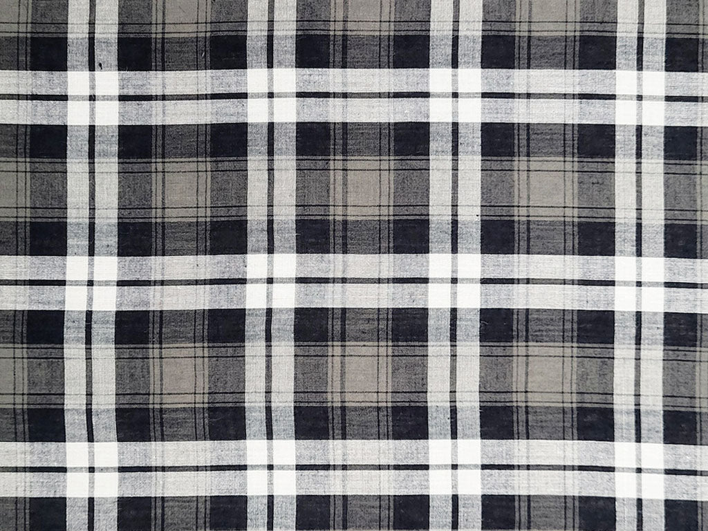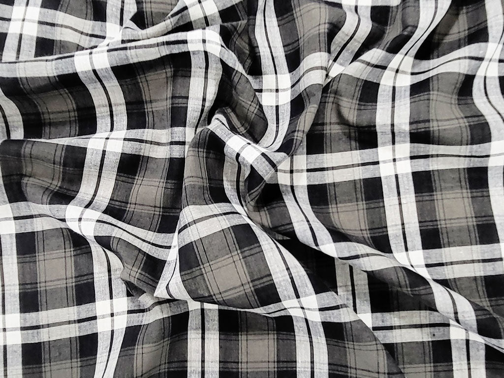 This elegant fine cotton khadi fabric features a timeless monochrome plaid pattern in black, white, and subtle grey tones, crafted using 100s count yarn. The yarn-dyed technique enhances the clarity and depth of the checks, giving the fabric a refined and balanced visual appeal.