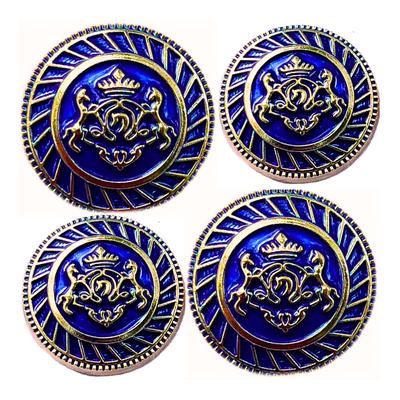 Golden & Blue King’s Choice Twin Horse Shield Crest Eye-Catchy Design Round Shank Metal Button Blue and Golden Colour for Coat, Suit, Blazer, Sherwani, Nehru Jacket and for all Types of Clothes