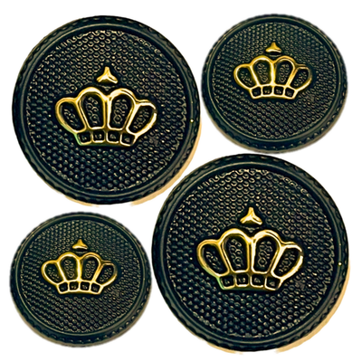 Black & Golden King’s & Queen’s Favourite Crown Design Round Shank Plastic Button Black and Golden Colour for Coat, Suit, Blazer, Sherwani, Nehru Jacket and for all Types of Clothes