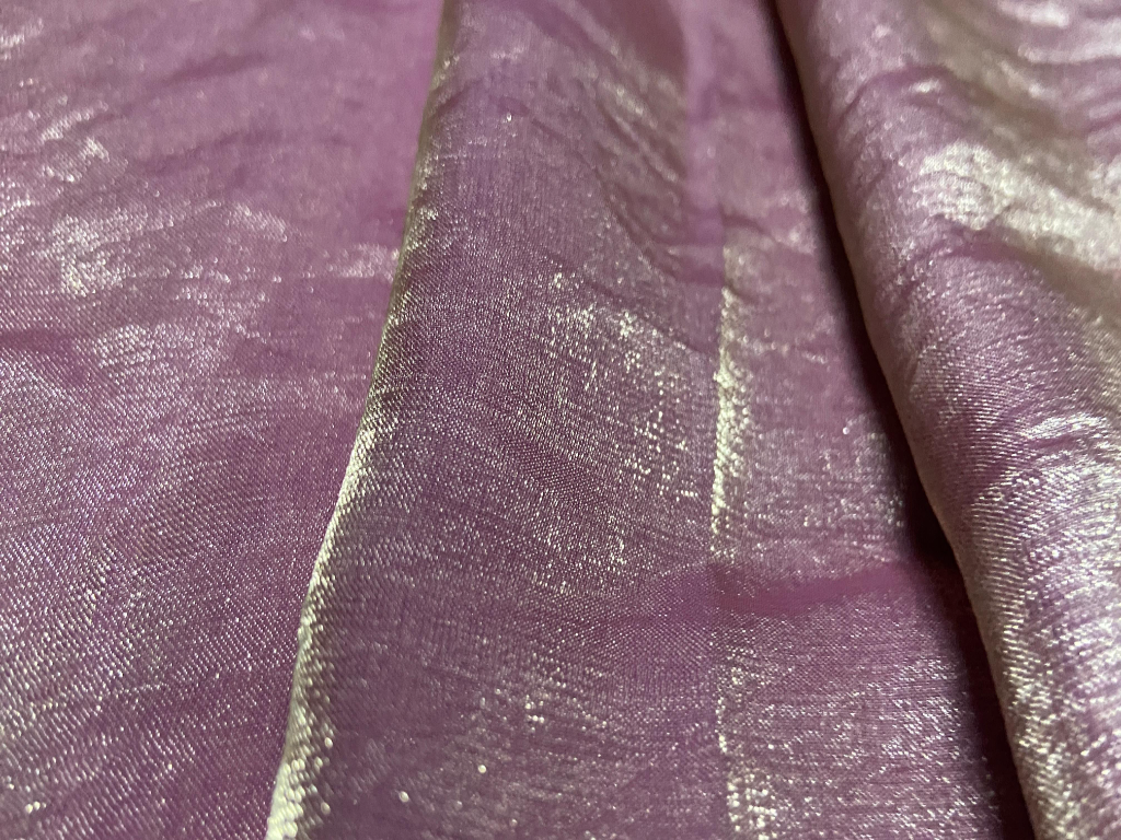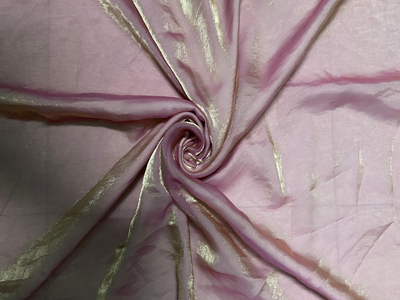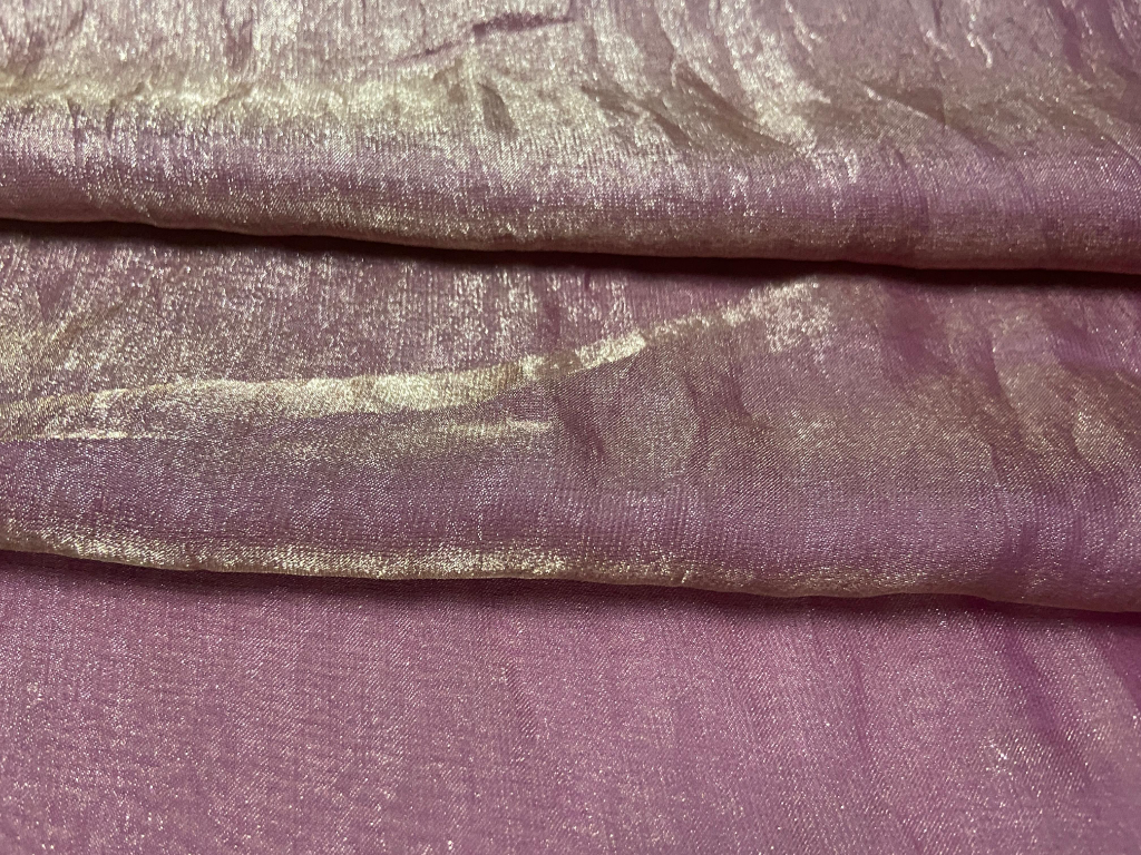 - Color-Shift (Iridescence): This weaving technique creates a beautiful, shimmering, and color-changing effect (iridescence). The fabric looks dominantly pink with a striking, metallic gold glow that seems to ripple and move as the light hits it or as the fabric is draped.