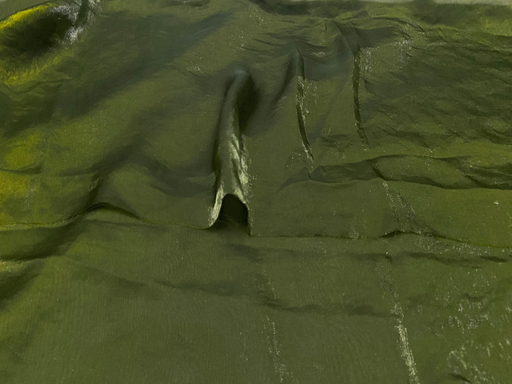 - High Sheen and Iridescence: The crushed or slightly textured finish enhances the way the fabric catches the light, giving it a rich, multi-dimensional look and shimmer.