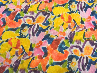 Multicolor 100 % Pure Cotton Chikan Embroidered Fabric