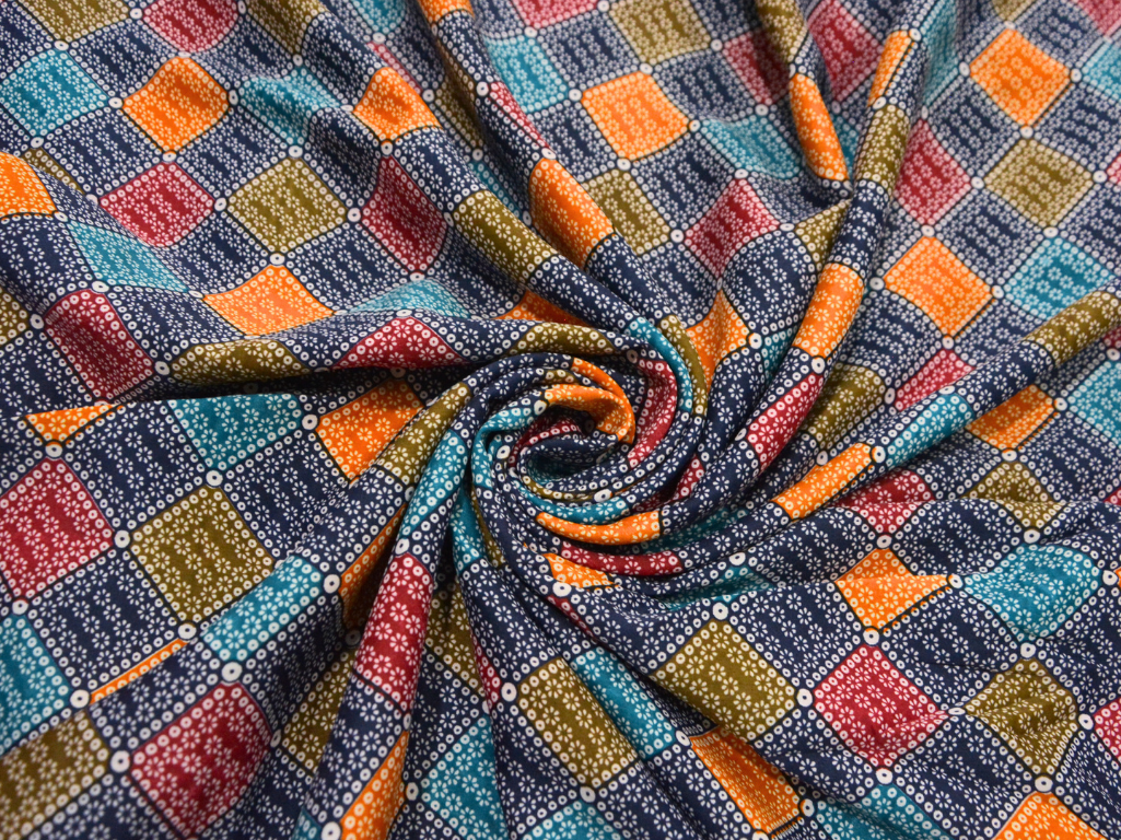 Navy Blue Diamond Digitally Printed Butter Crepe Fabric