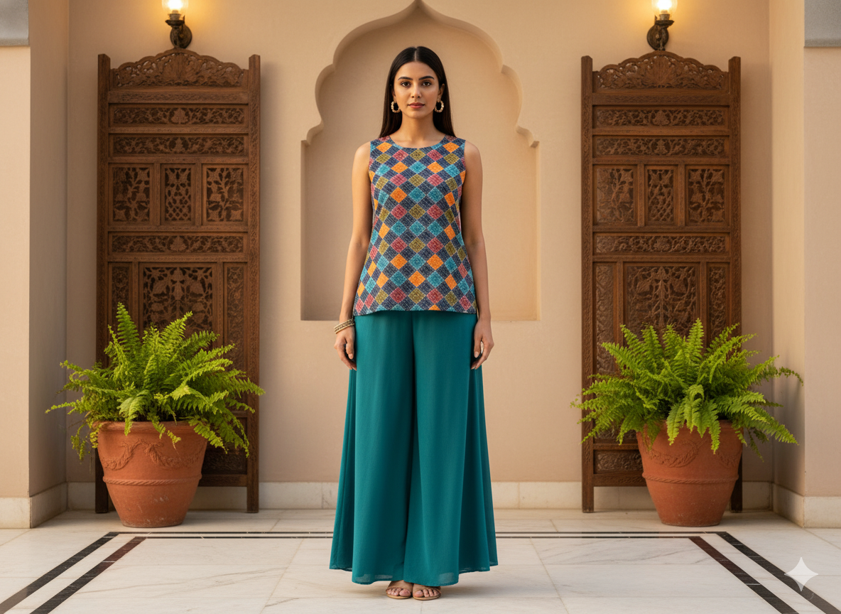 Digitally Printed Butter Crepe Fabric is a soft, lightweight, and flowy synthetic fabric that is digitally printed with various designs. Here's a full breakdown: Fabric Name: Butter Crepe (Digitally Printed) Material: Usually polyester or a polyester blend Texture: Smooth, slightly crinkled, and soft to the touch (hence ""butter"") Weight: Light to medium-weight Stretch: Typically slight to moderate stretch, depending on the blend Finish: Matte or semi-matte, not shiny Prints: High-resolution digital prints (florals, abstracts, ethnic, etc.) Drape: Excellent drape, flows well Durability: Wrinkle-resistant and strong